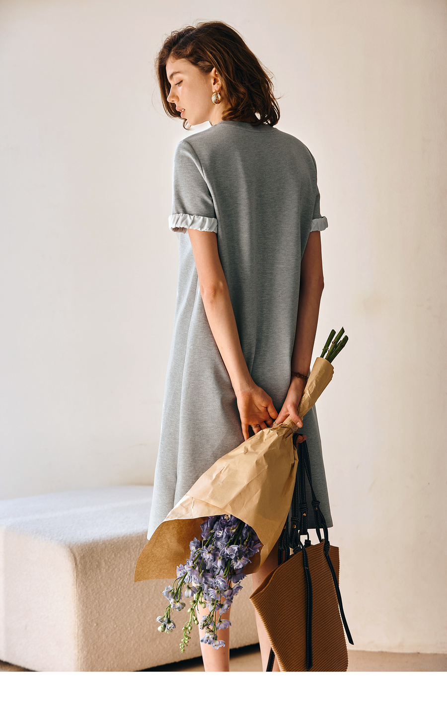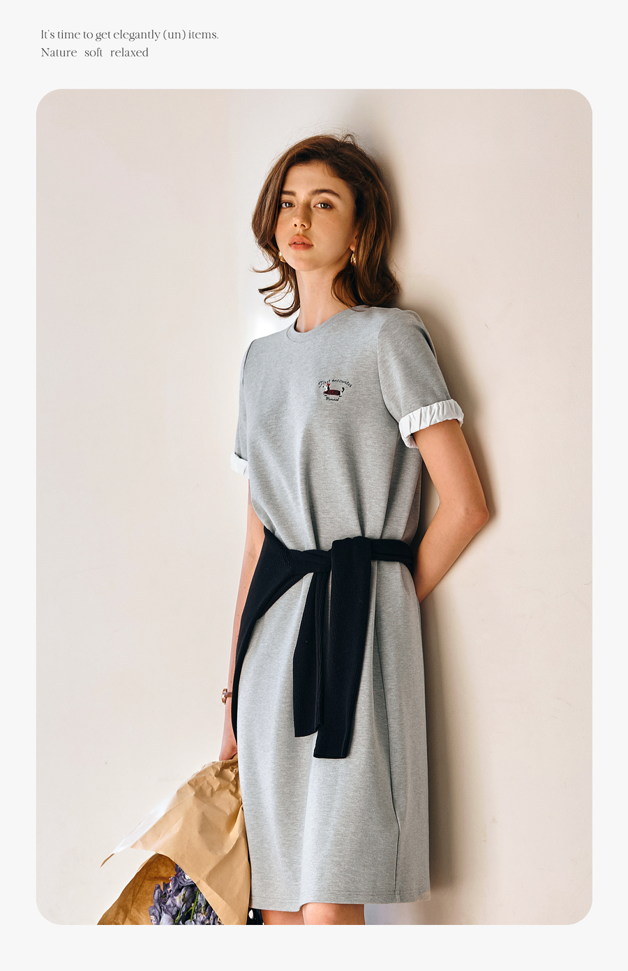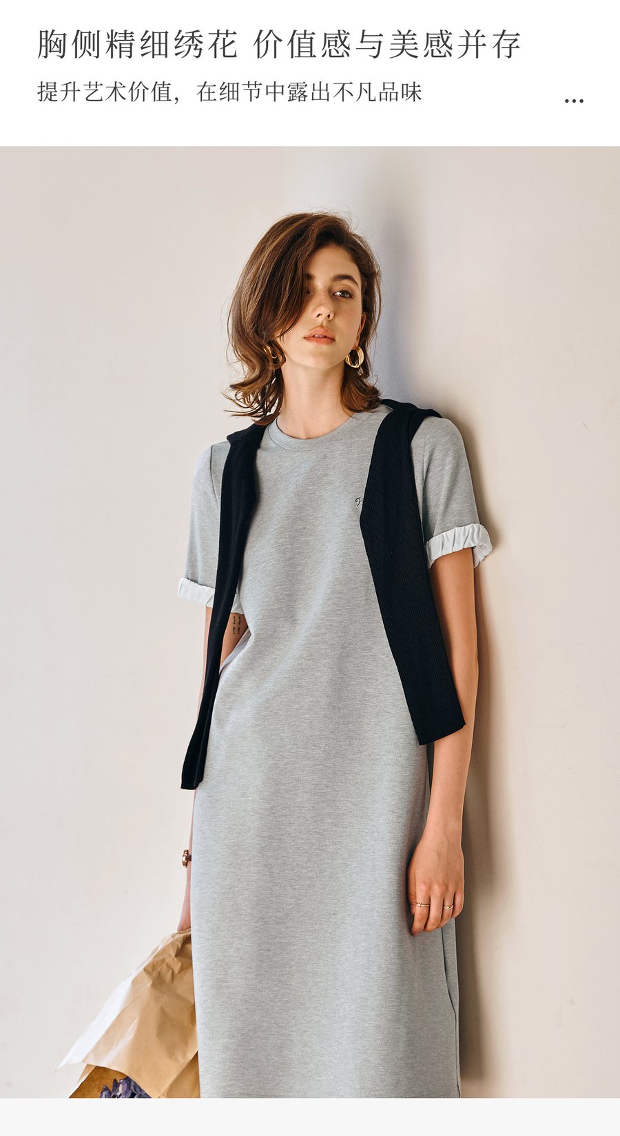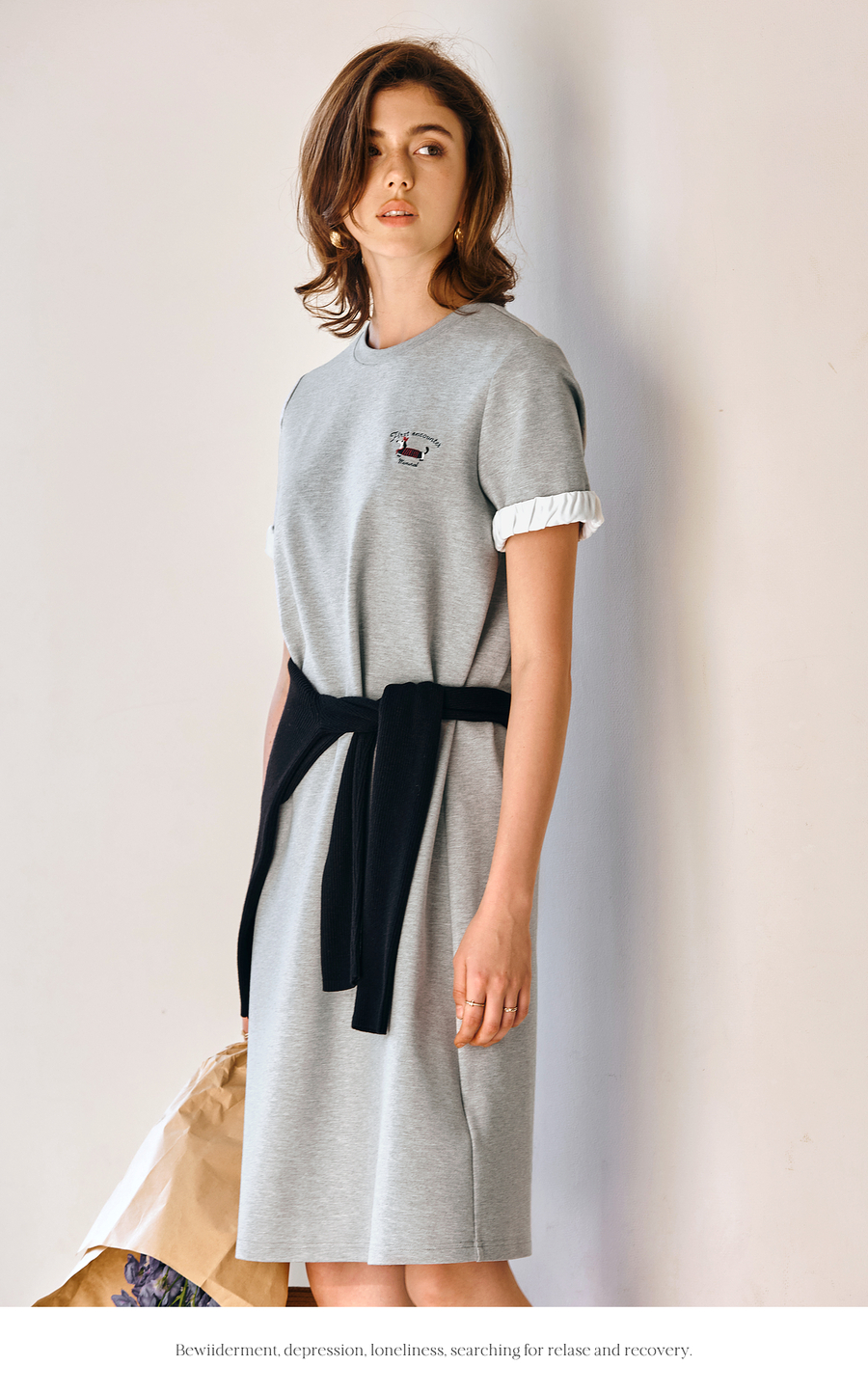 OLrain欧芮儿灰色休闲设计感连衣裙女春季2025年新款宽松撞色裙子