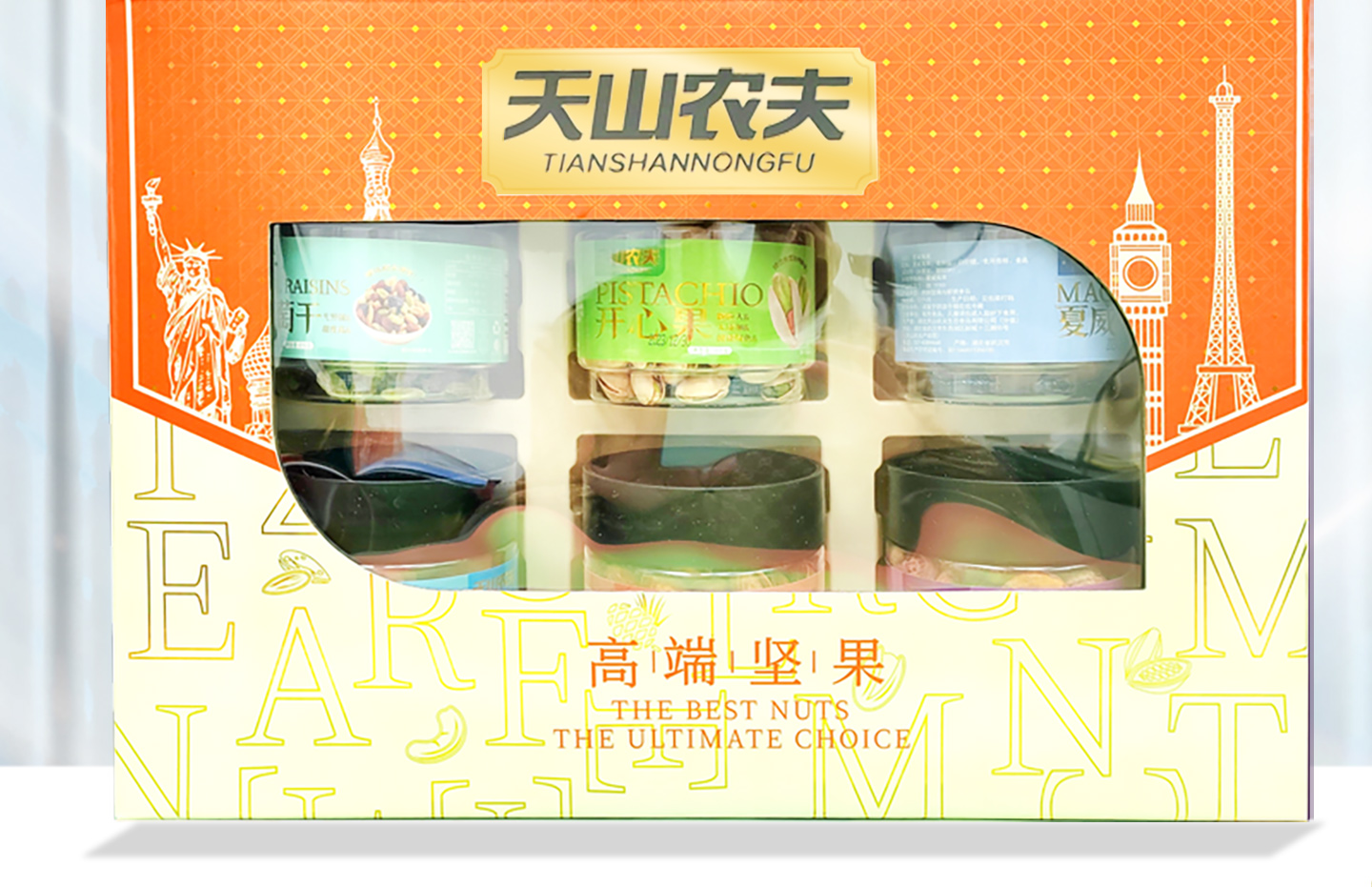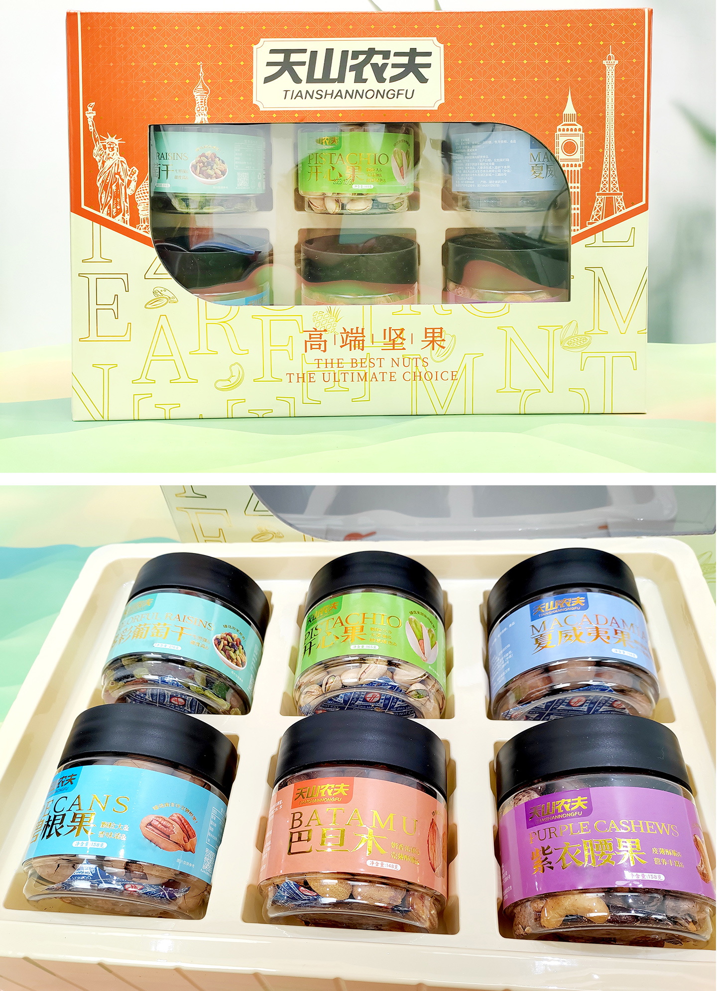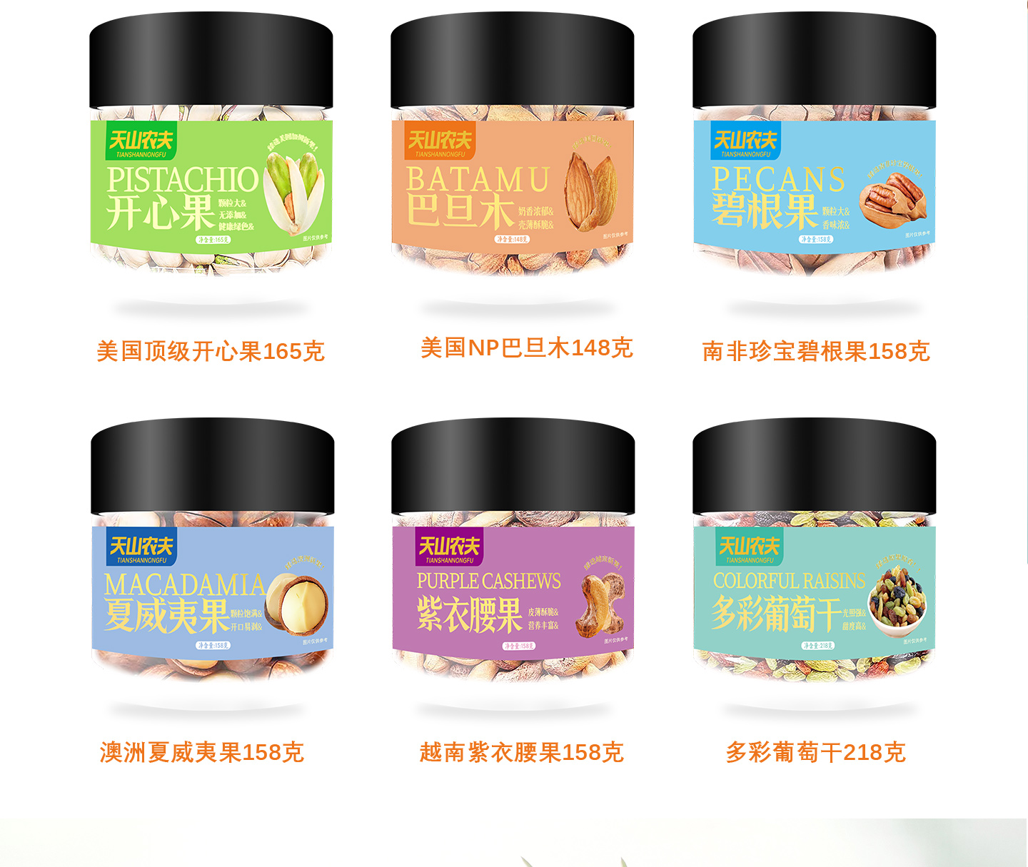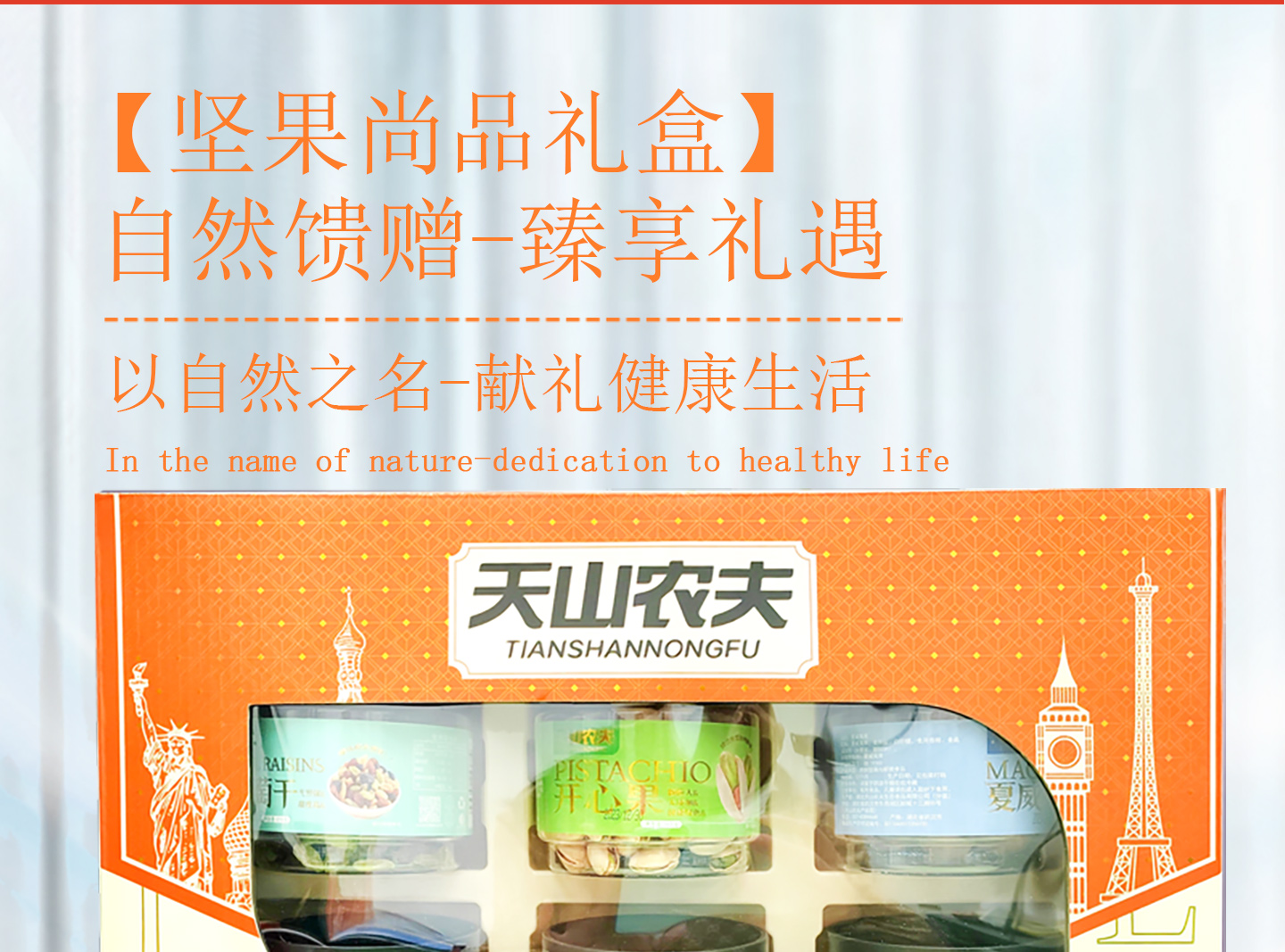 天山农夫 尚品坚果礼盒1005g(165克开心果、148克巴旦木、158克碧根果、158克夏威夷果、158克紫衣腰果、218克多彩葡萄干)