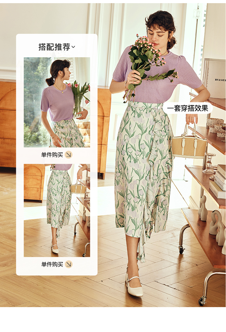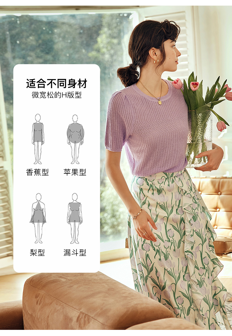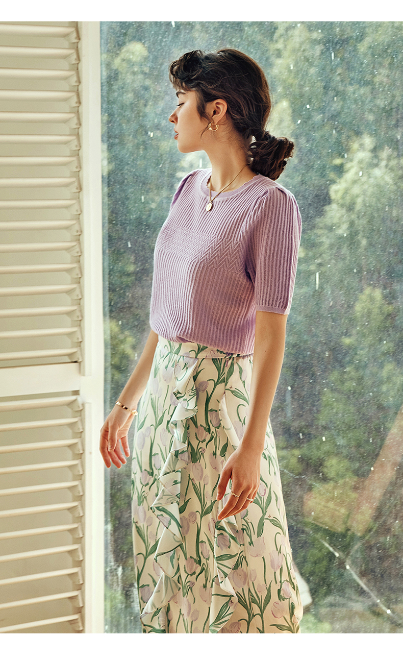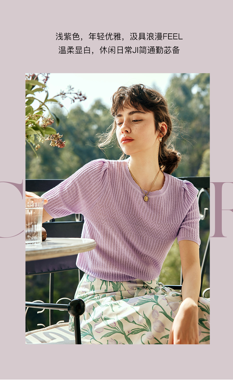 OLrain欧芮儿法式紫色针织衫女夏季2023新款宽松显瘦泡泡袖套头衫