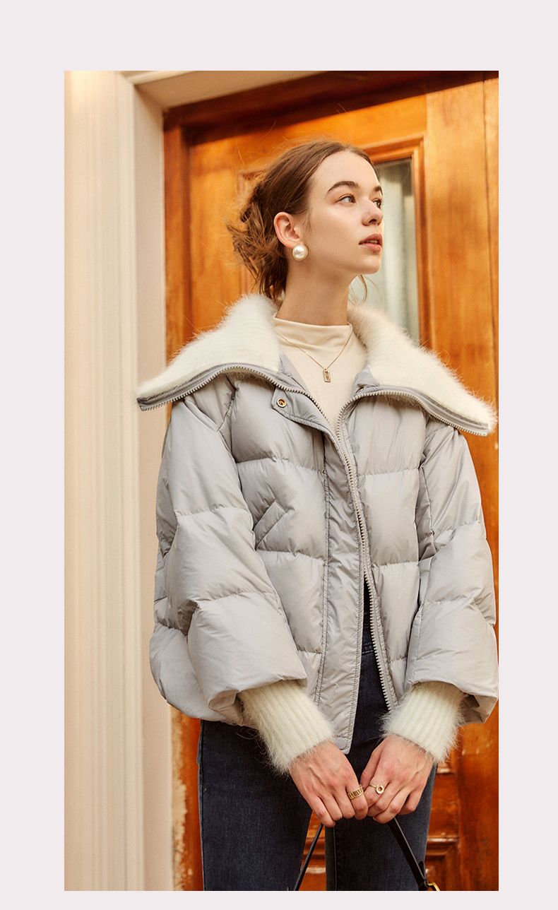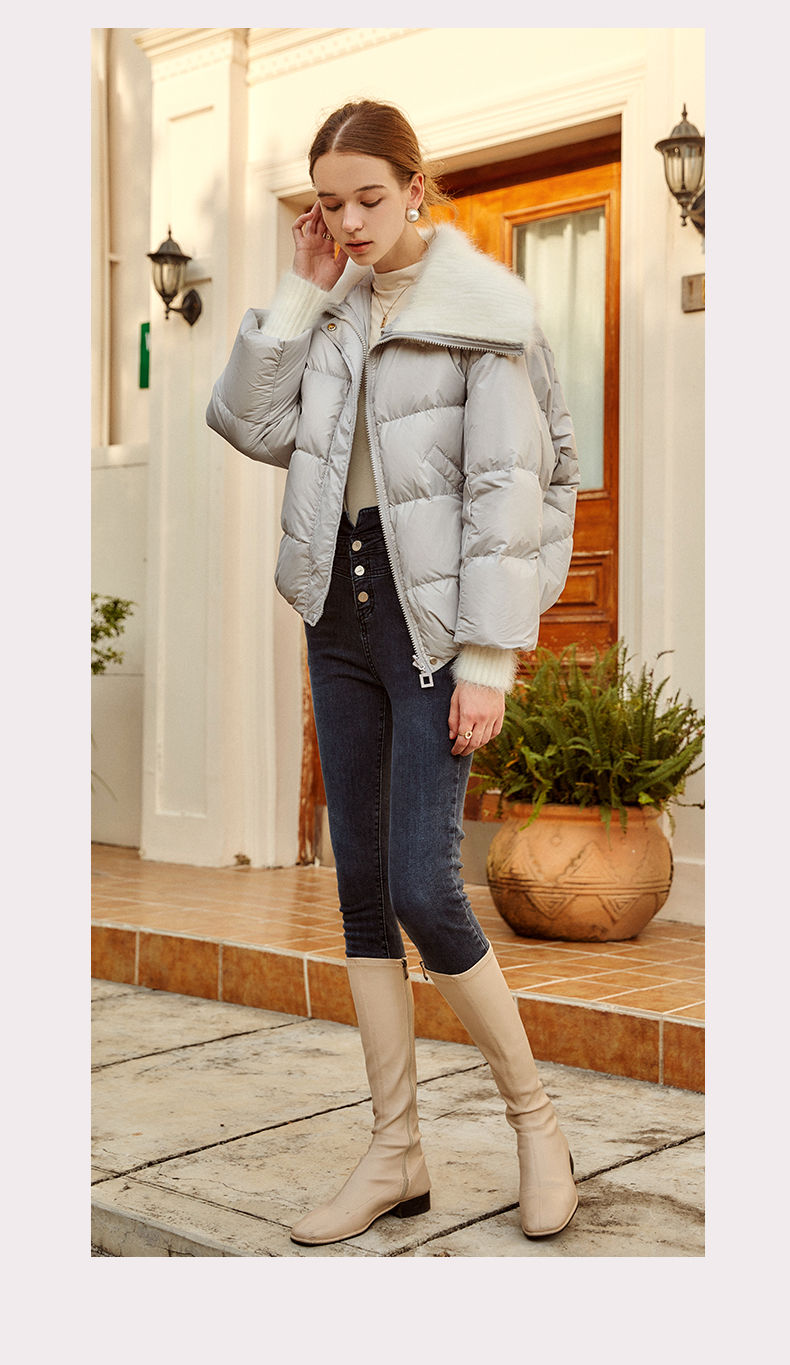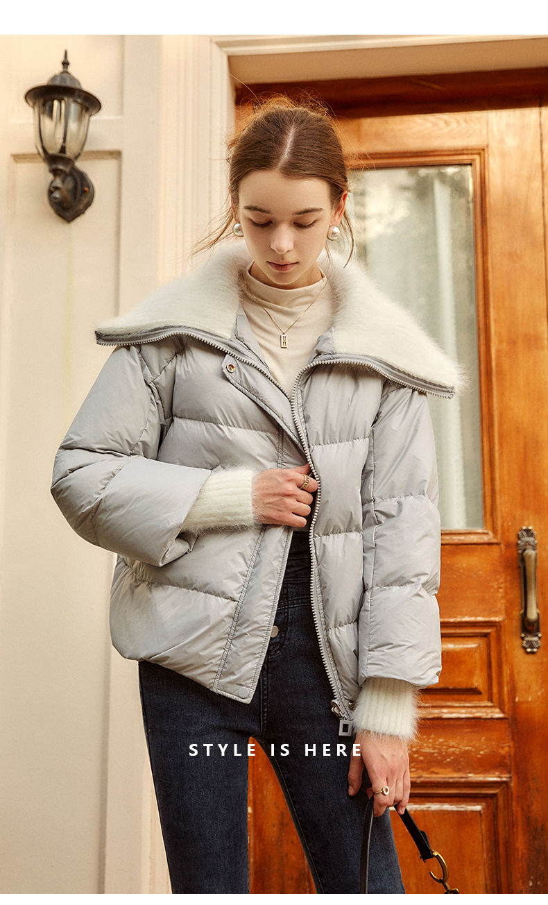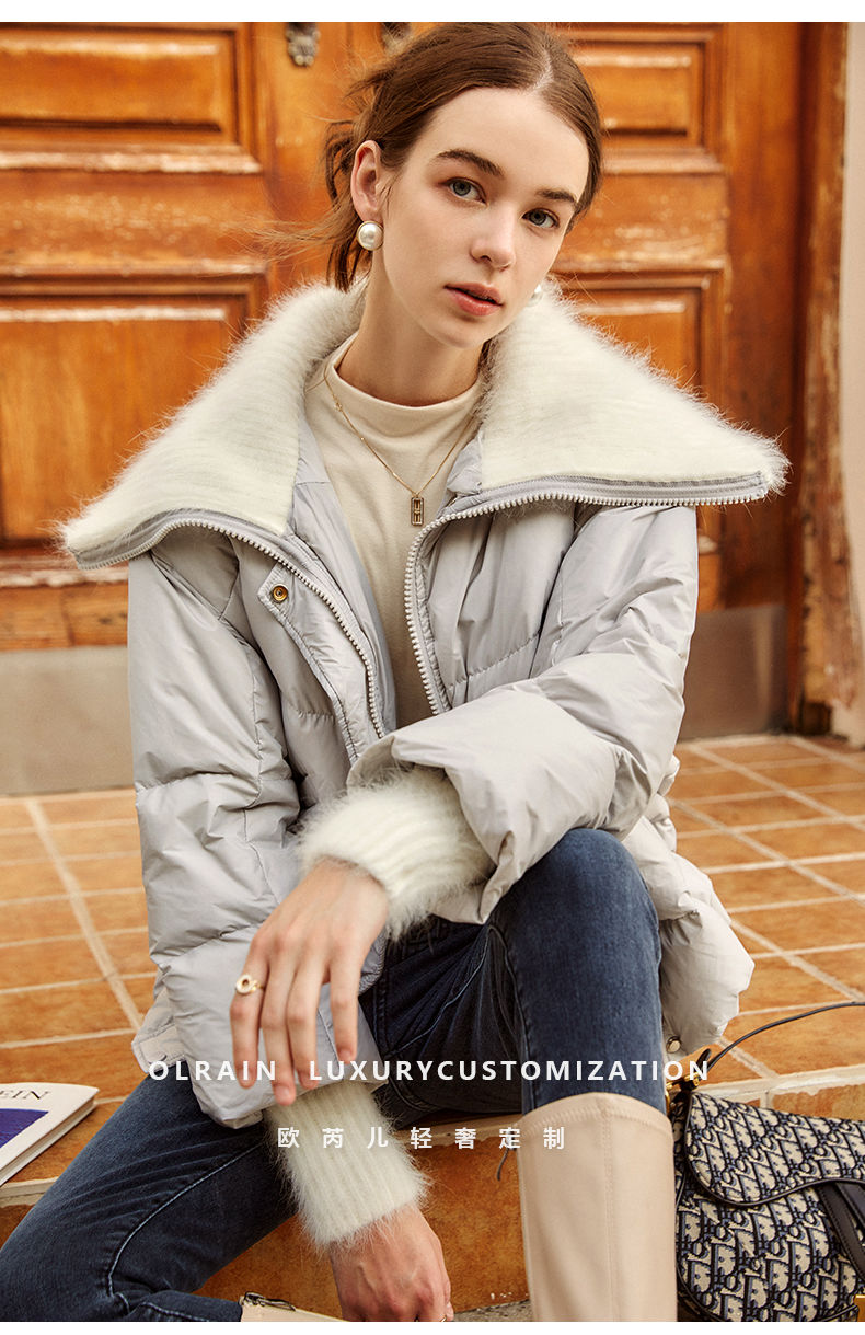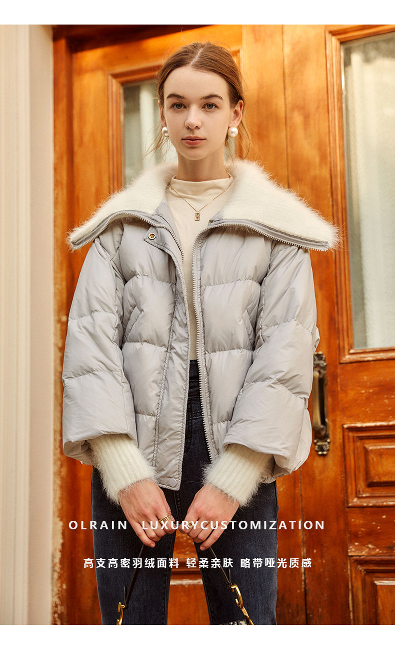 OLrain欧芮儿法式短款羽绒服女冬季2025新款毛领白鸭绒面包服外套