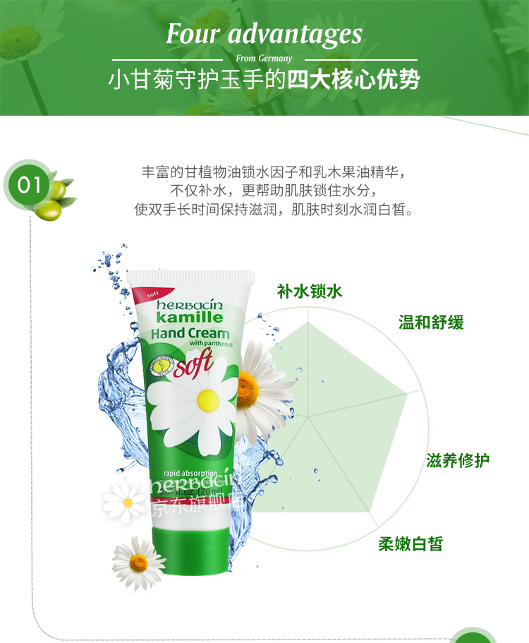 德国小甘菊(Herbacin)柔皙护手霜20ml(春夏适用 嫩滑滋润 补水保湿)
