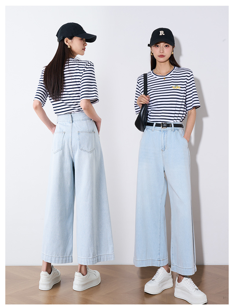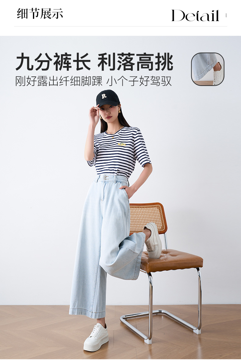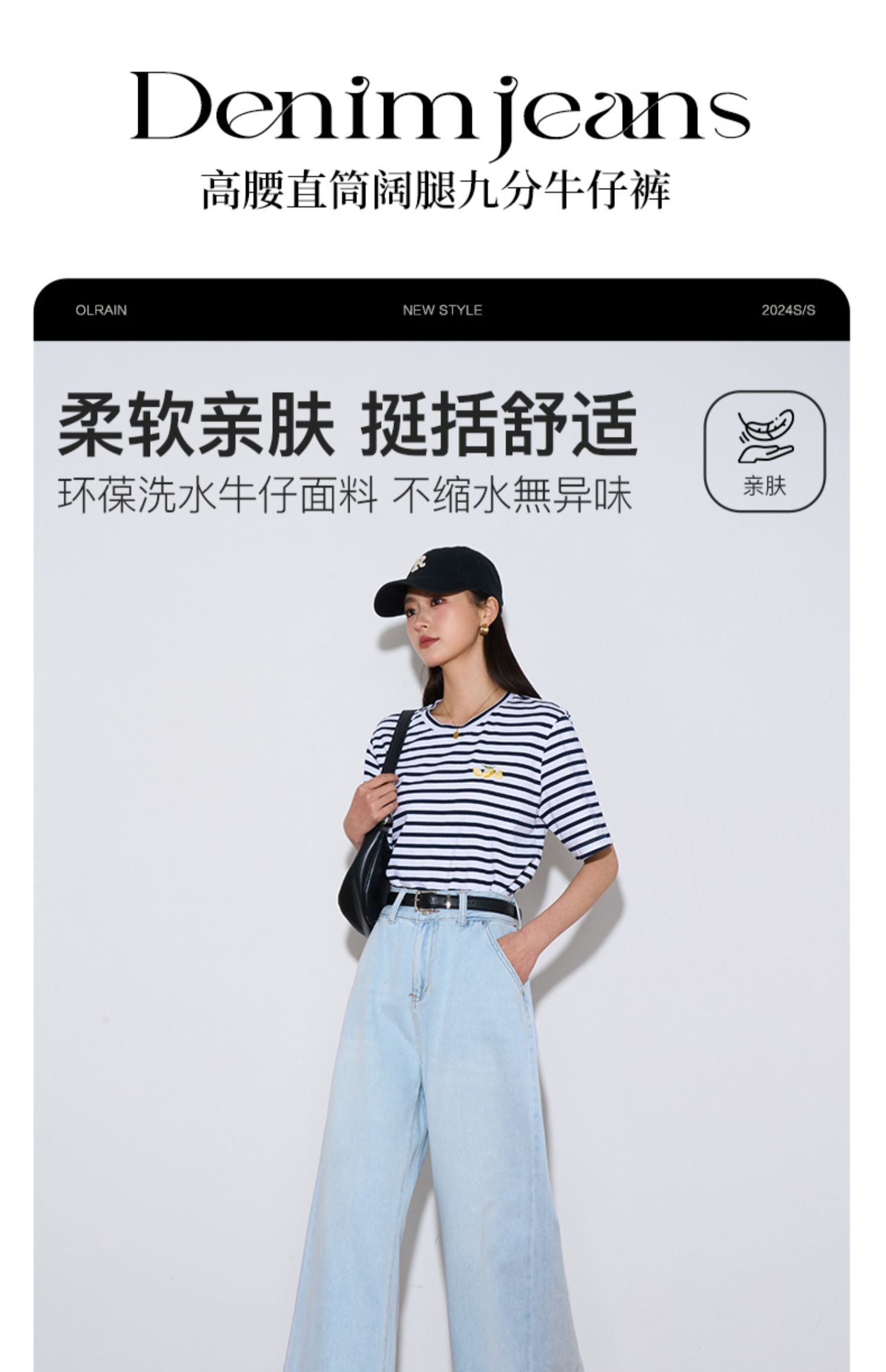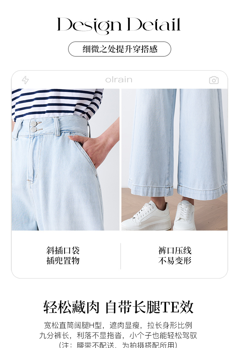 OLrain欧芮儿直筒牛仔裤女夏季2024年新款百搭高腰阔腿九分裤