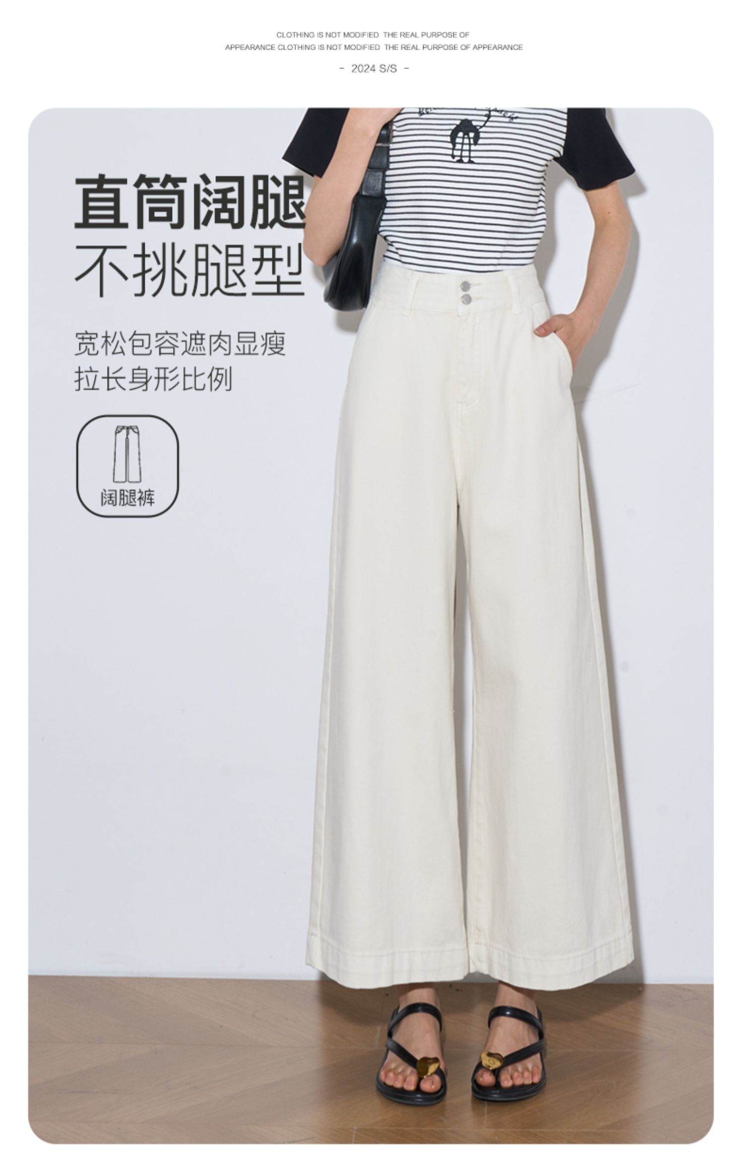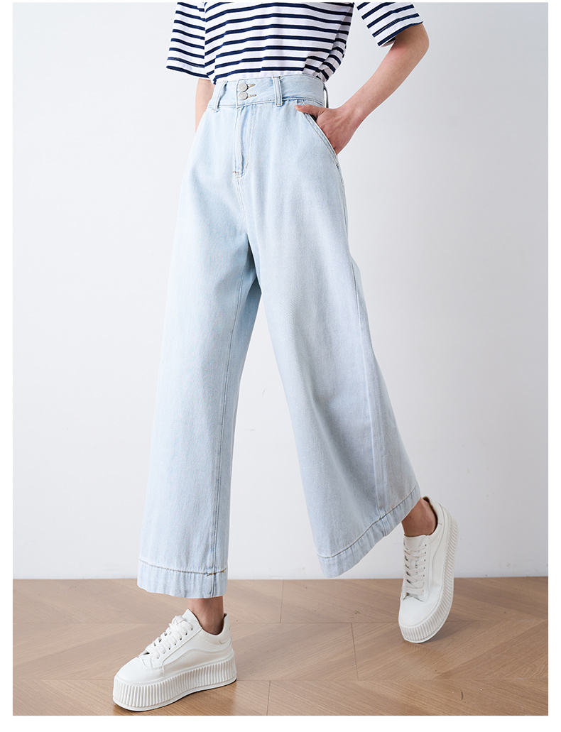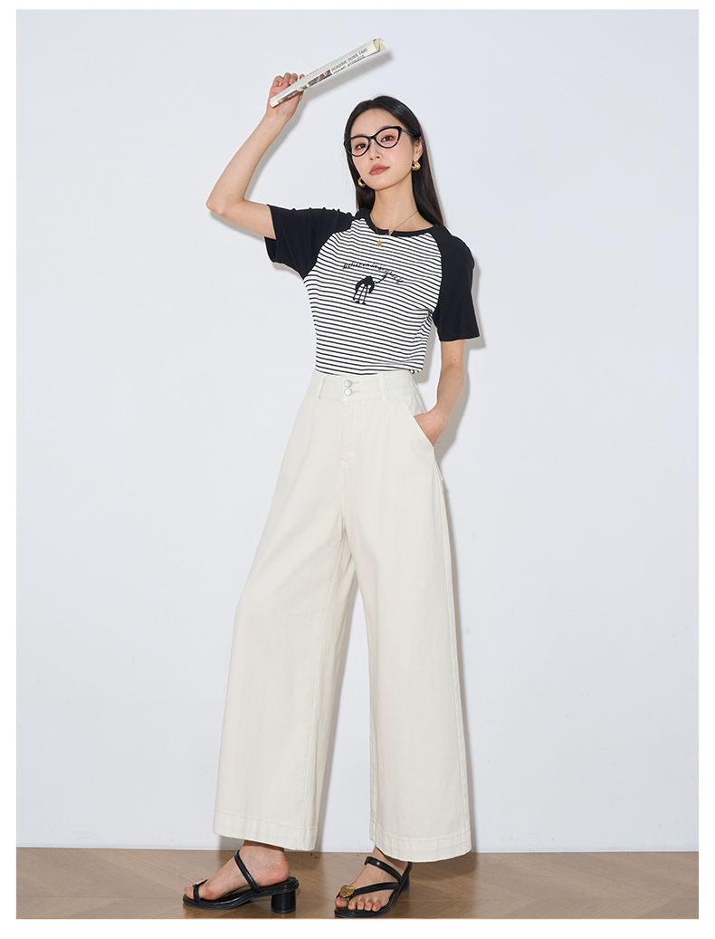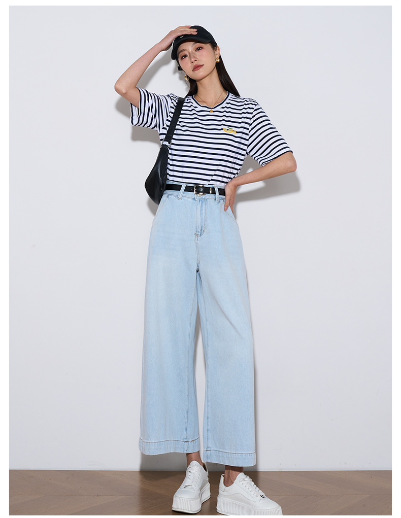OLrain欧芮儿直筒牛仔裤女夏季2024年新款百搭高腰阔腿九分裤