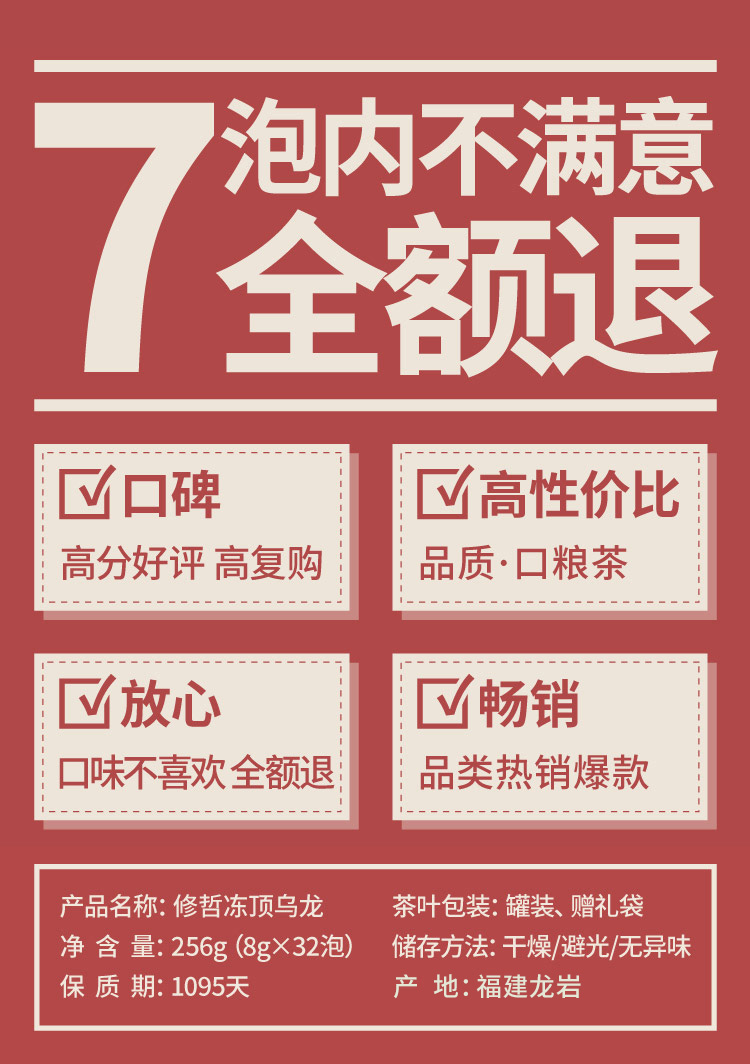 修哲无农残茶叶台湾高山茶冻顶乌龙茶256g(128g*2罐)赛过大红袍 肉桂 铁观音 凤凰单枞 浓香型 送礼袋