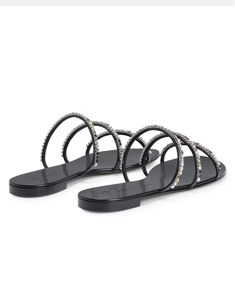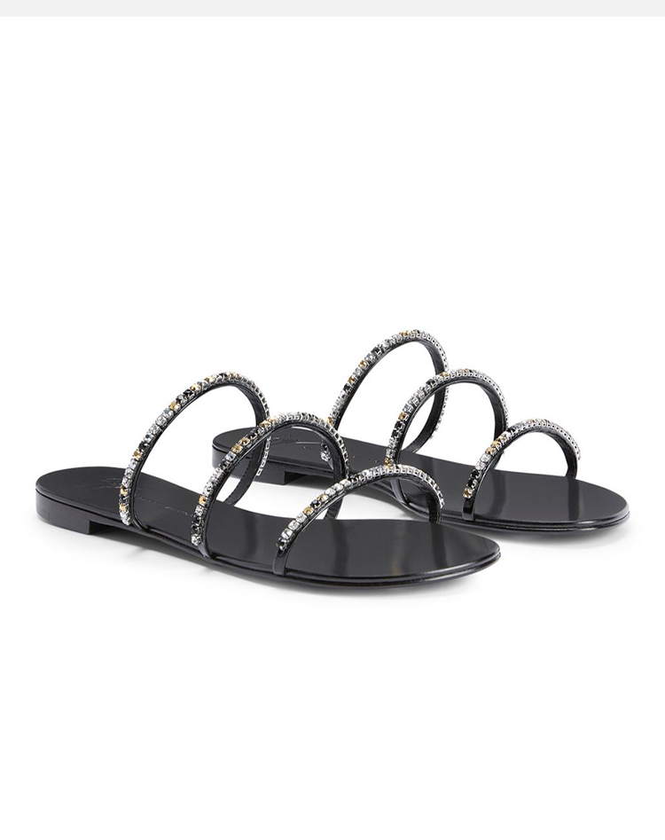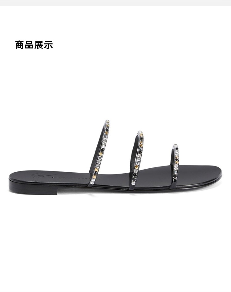 Giuseppe Zanotti 女士签名徽标仿漆皮平跟凉鞋 黑色 I300017001