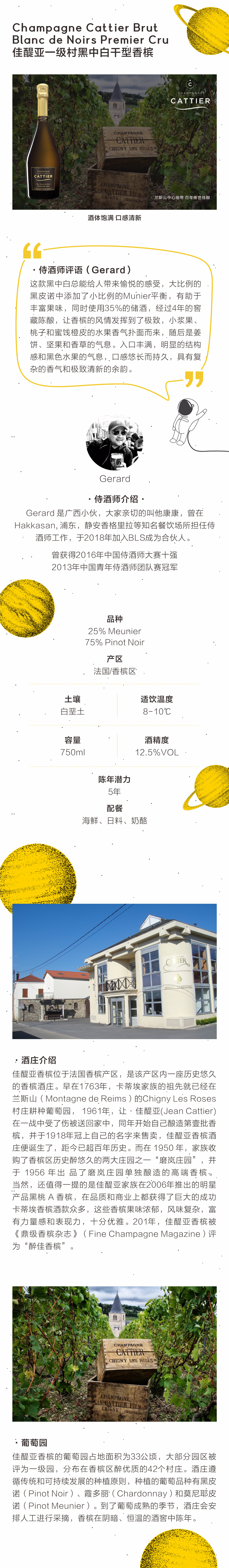 佳醍亚香槟一级村黑中白干型 NV Champagne Cattier Brut Blanc de Noirs Premier Cru