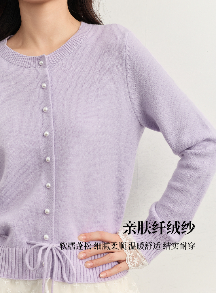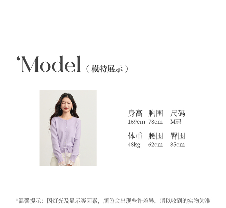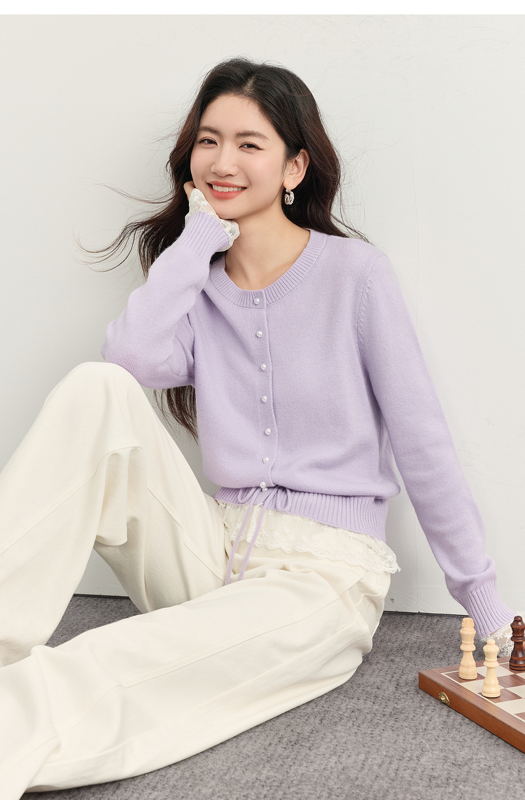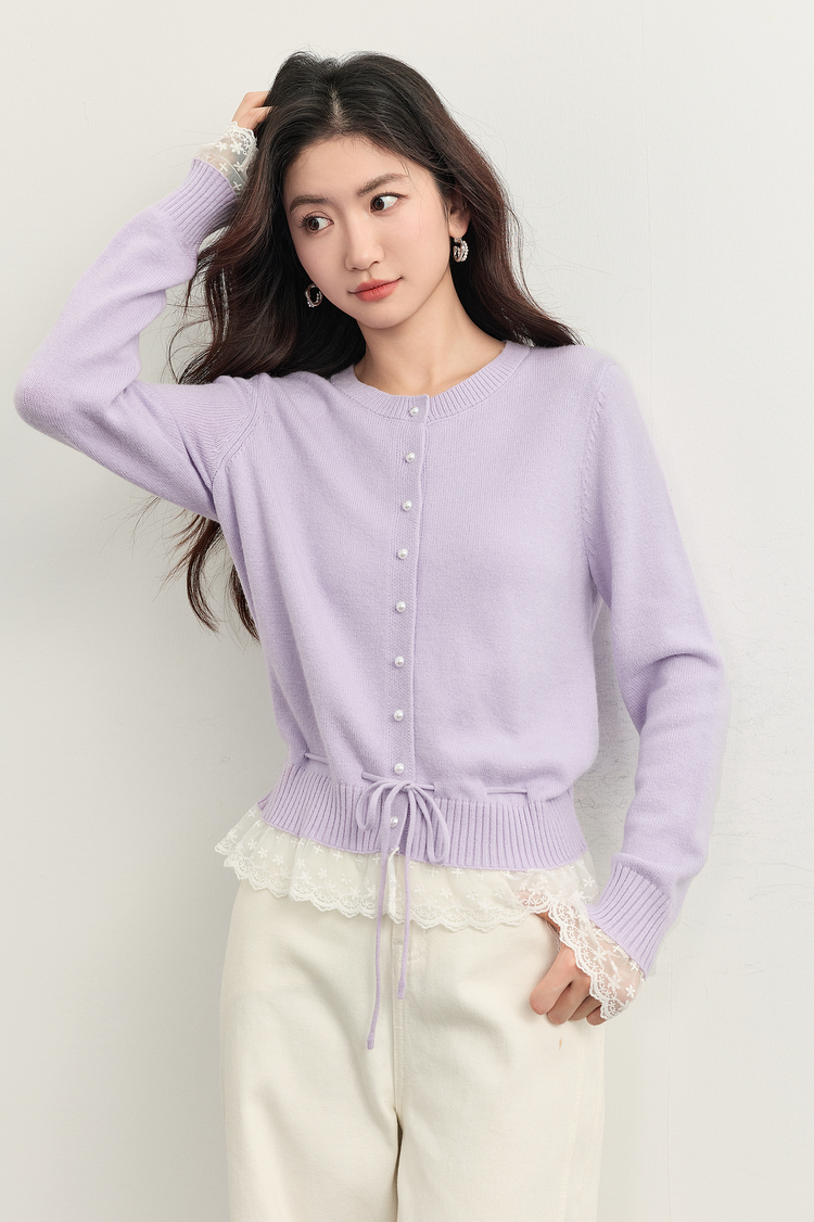 【10/23新品】熙世界超好看的紫色针织衫女长袖2025秋新款蕾丝花边拼接打底毛衣