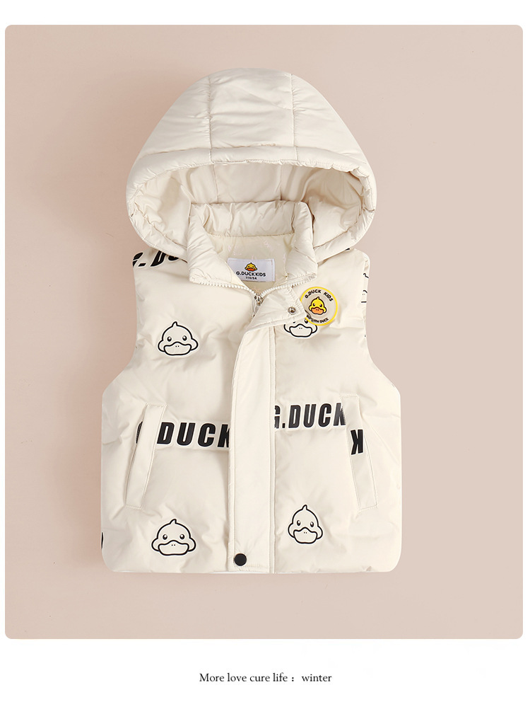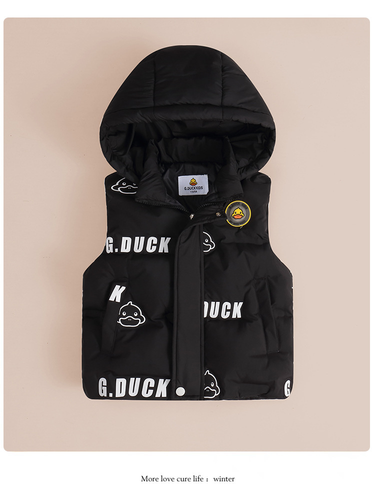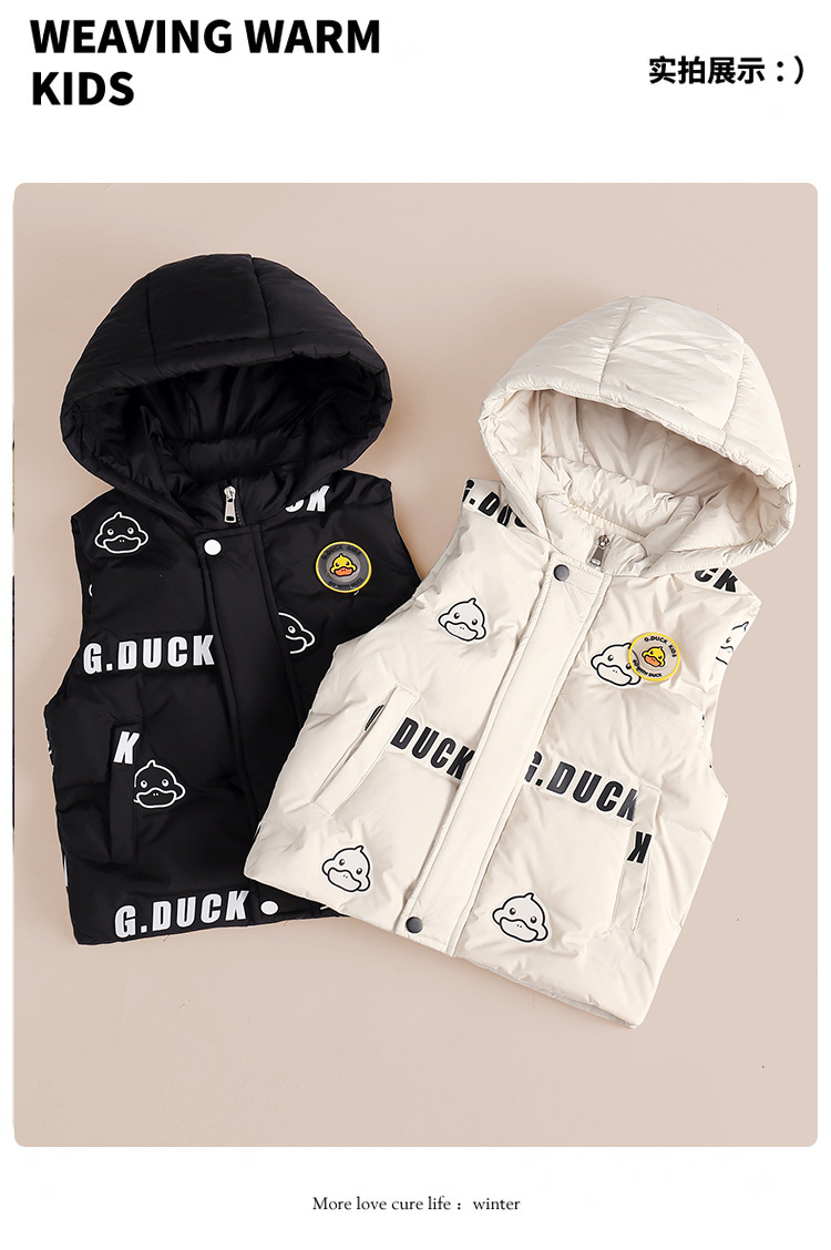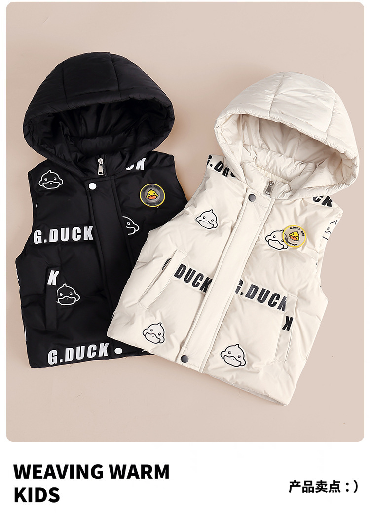 小黄鸭童装男童女童连帽羽绒马甲秋冬宝宝保暖外穿儿童宝宝马夹潮
