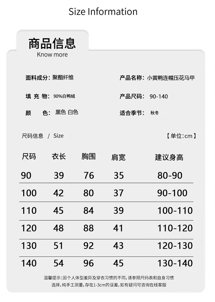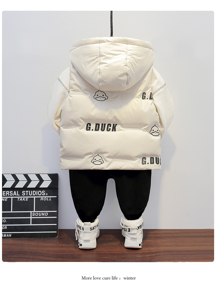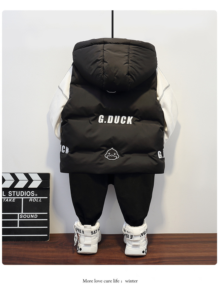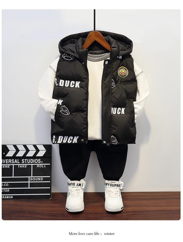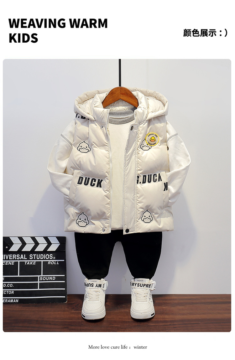 小黄鸭童装男童女童连帽羽绒马甲秋冬宝宝保暖外穿儿童宝宝马夹潮