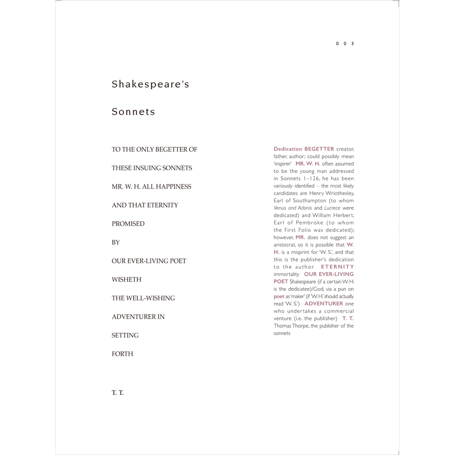 英国莎学专家乔纳森· 贝特(Jonathan Bate)教授和埃里克· 拉斯马森(Eric Rasmussen)教授亲笔撰写注释,极具启发性。所注内容双色印刷,并标注行号,方便读者查询,让阅读更方便。