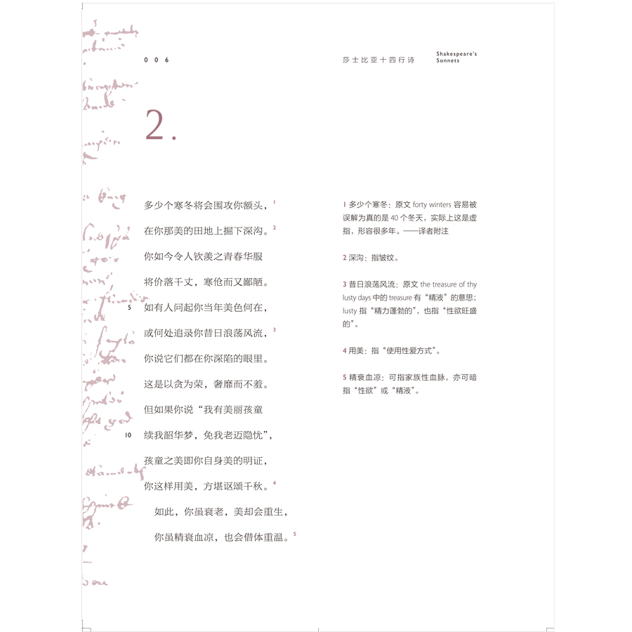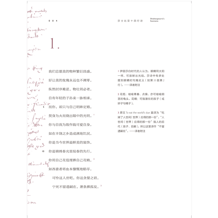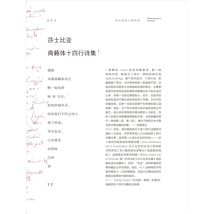 以久负盛名的皇家版“莎士比亚全集”为英文原本,精准呈现莎士比亚154首十四行诗。