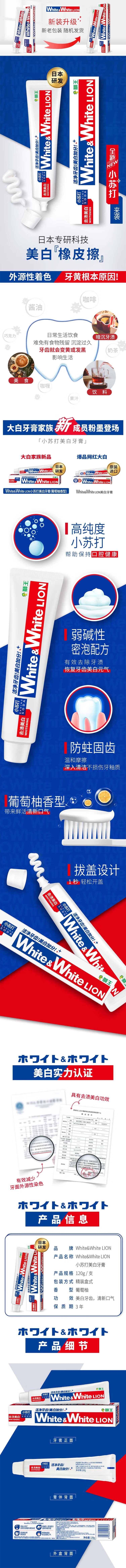 狮王W&W葡萄柚小苏打元气美白牙膏120g