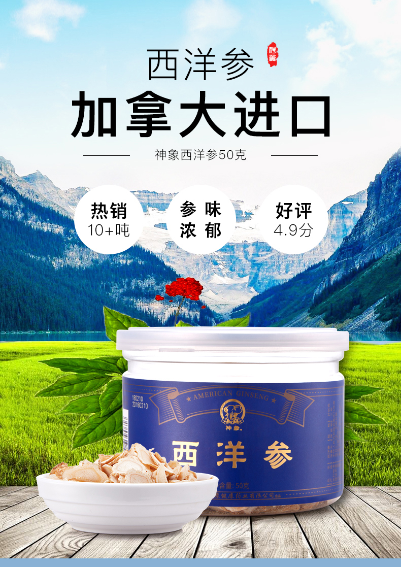 【冯站长精选】神象加拿大进口西洋参参片50克小片瓶装参片富含人参皂甙可口服