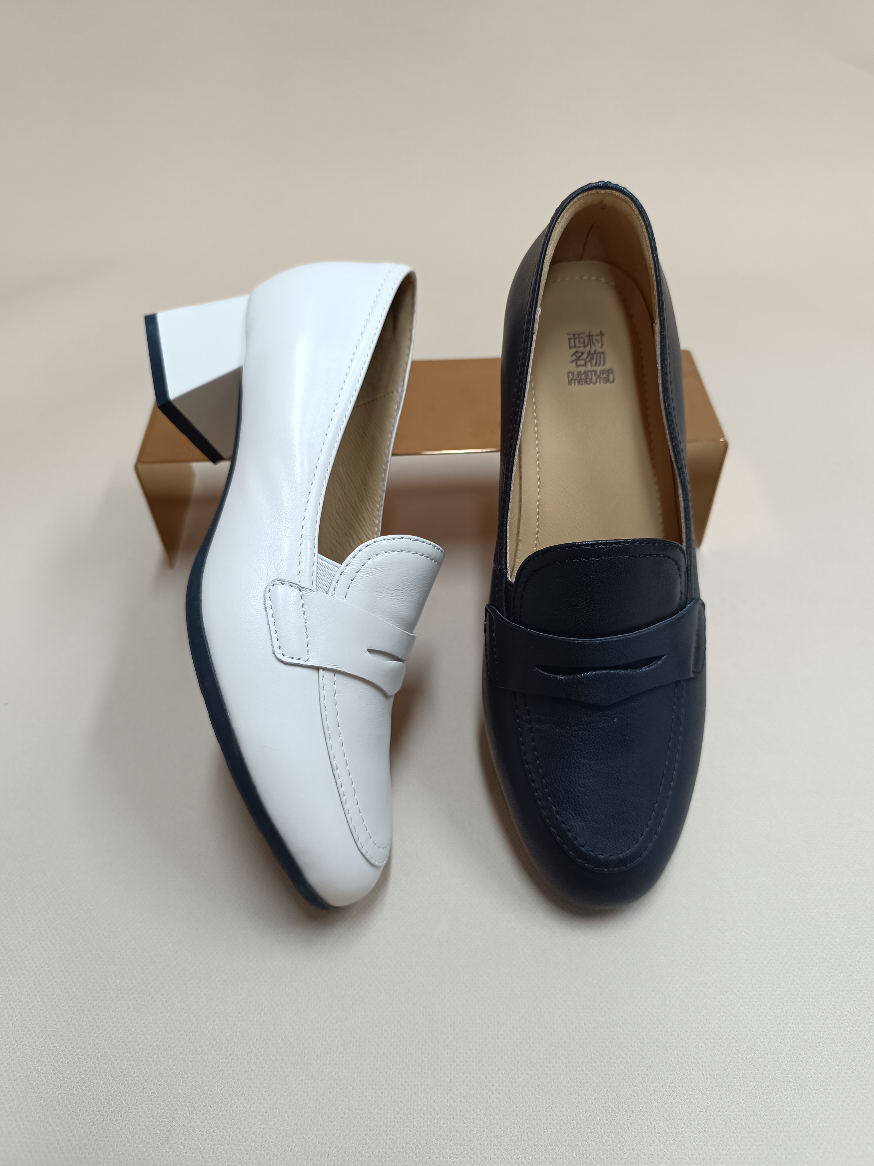 西村名物2025年秋季新款舒软原皮中跟防滑粗跟百搭深口单鞋乐福鞋X25CM30181