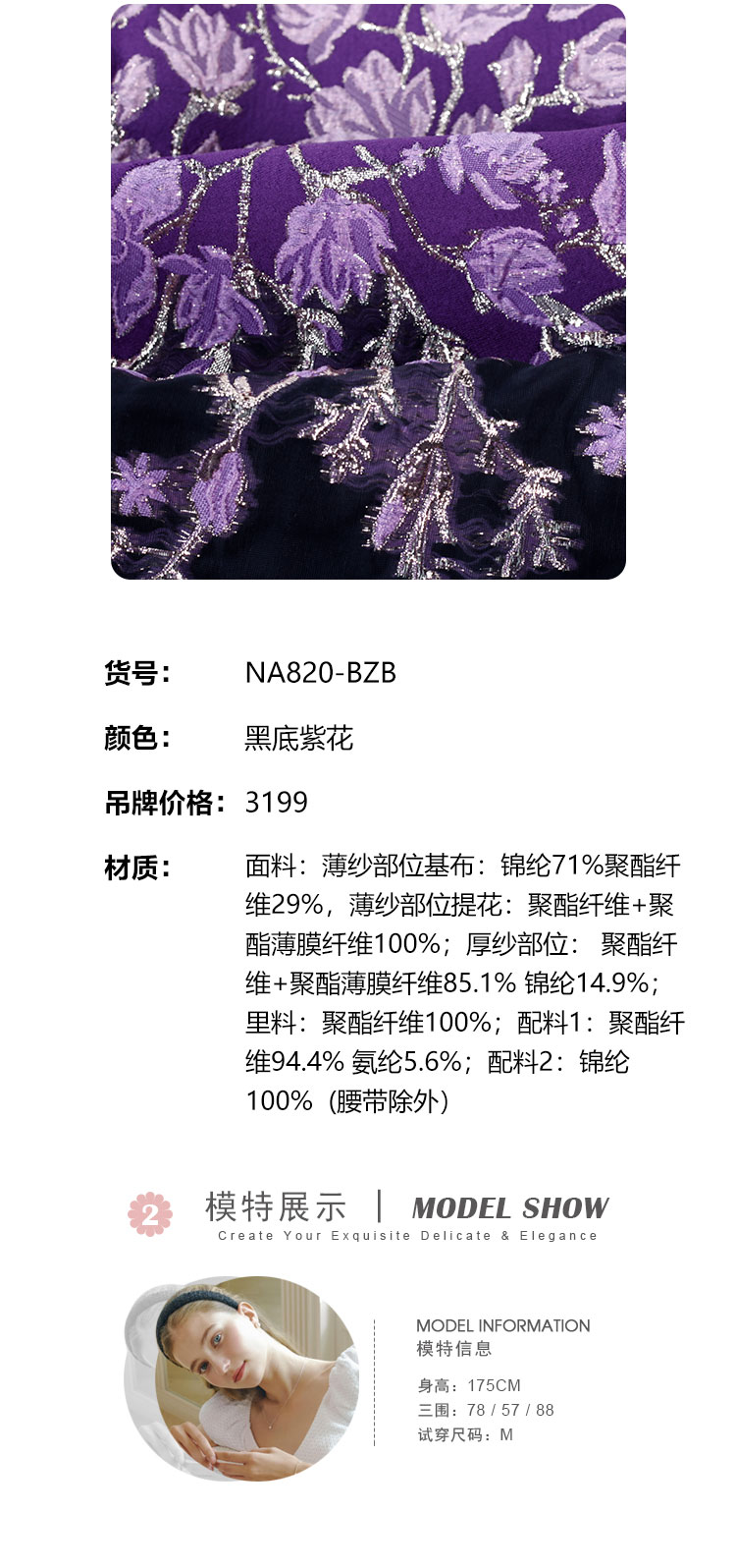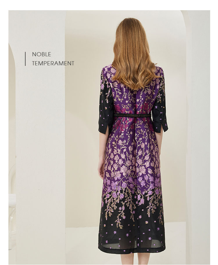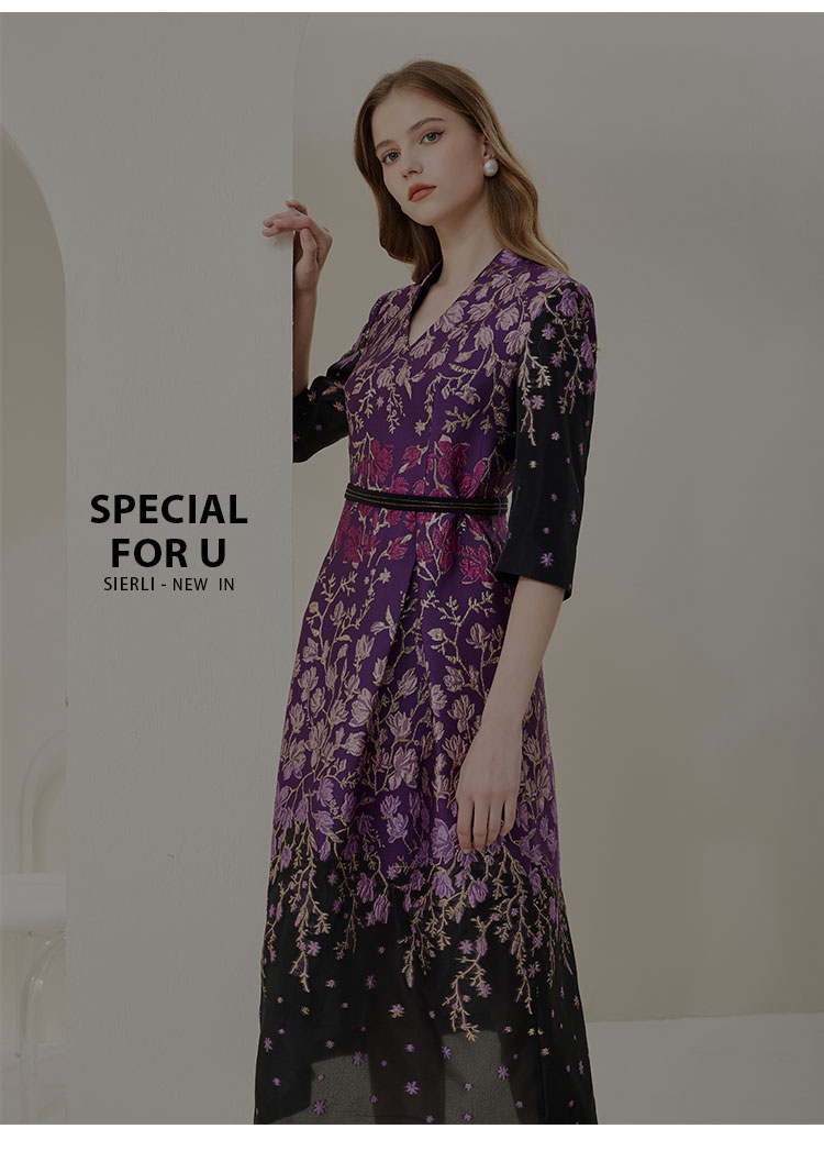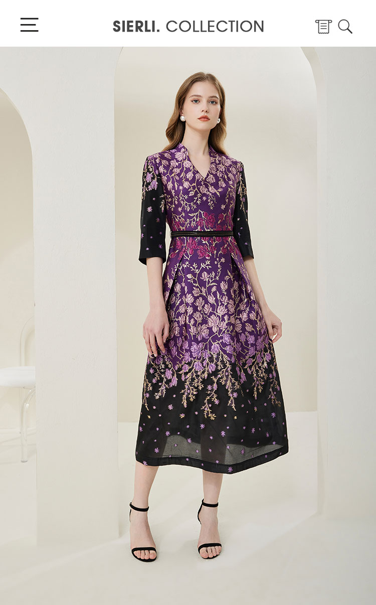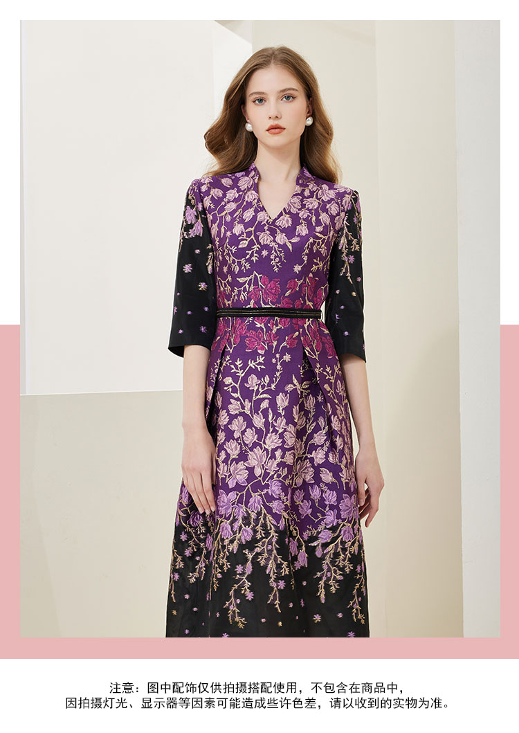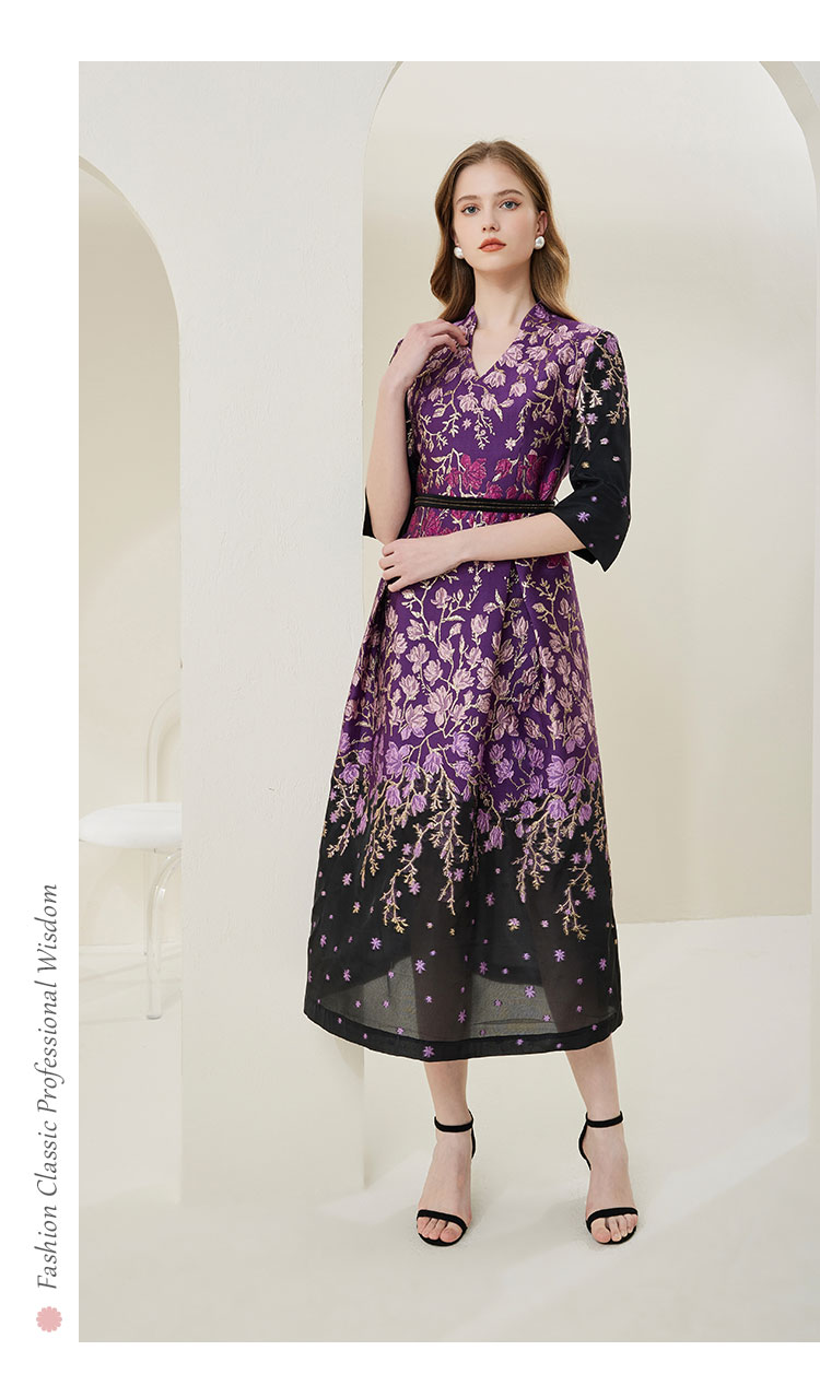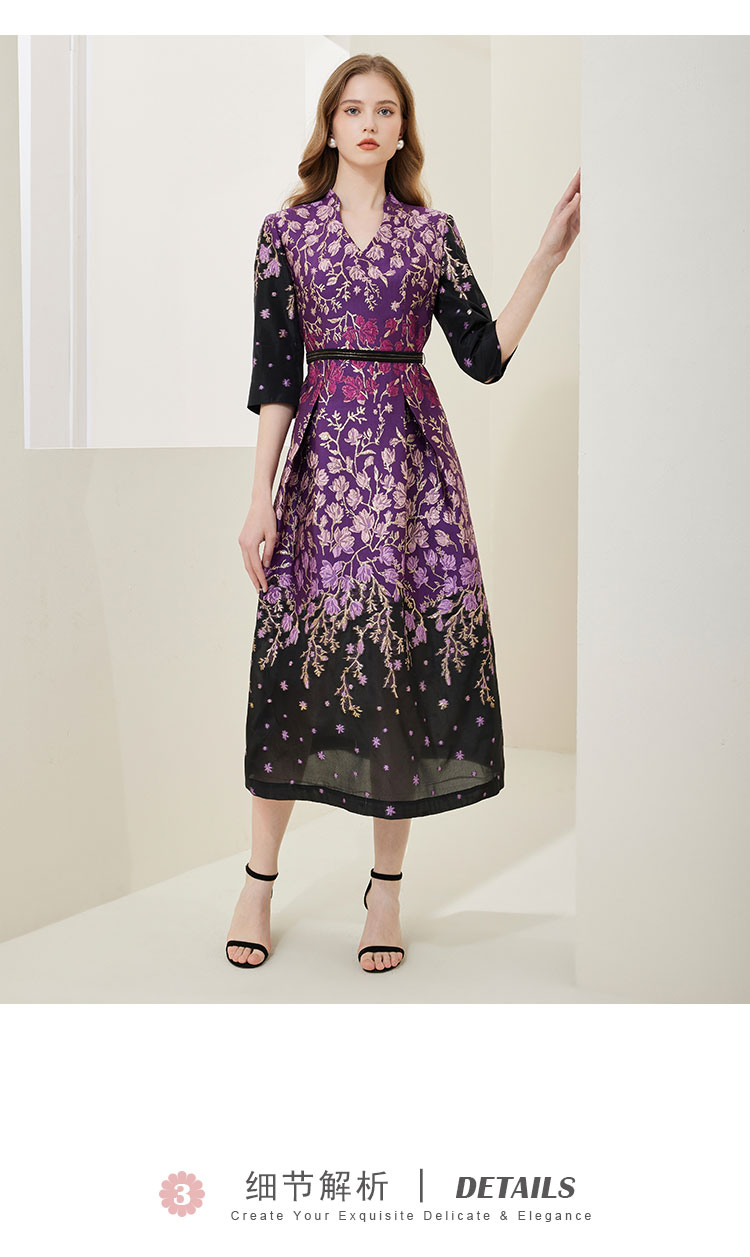NA820斯尔丽[商场同款]春季新款收腰大下摆优雅高贵提花礼服连衣裙
