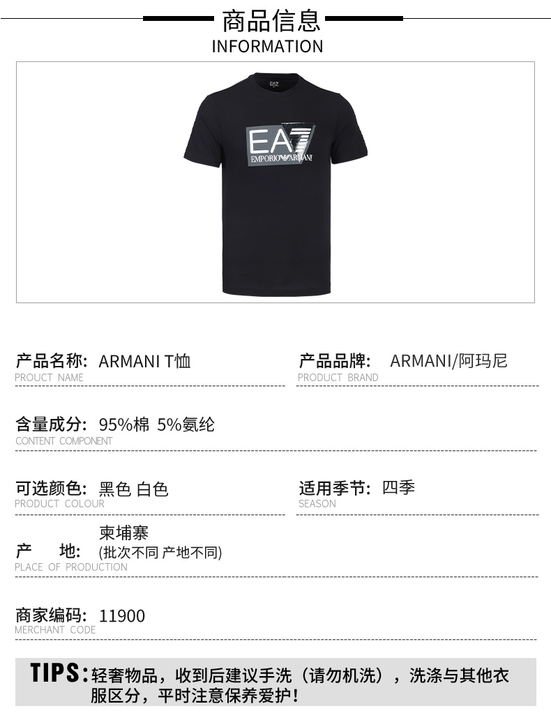 Armani EA7 男士弹棉运动休闲短袖T恤 11900
