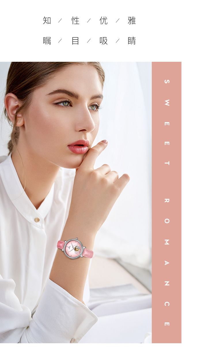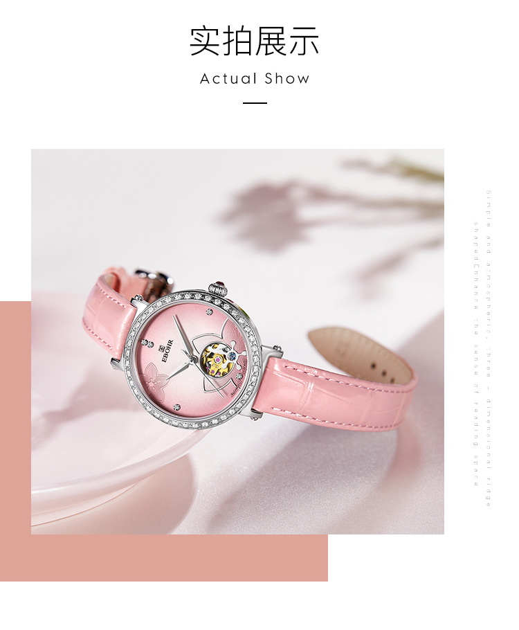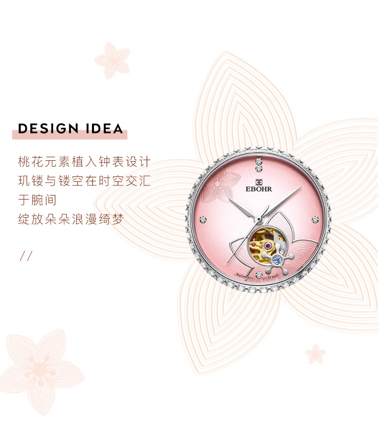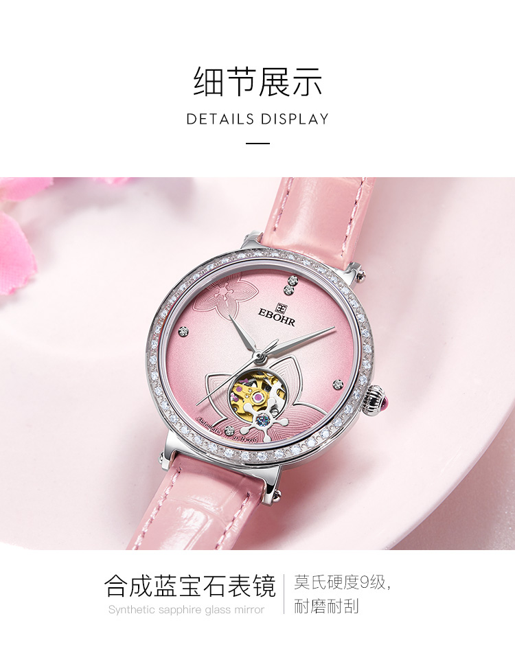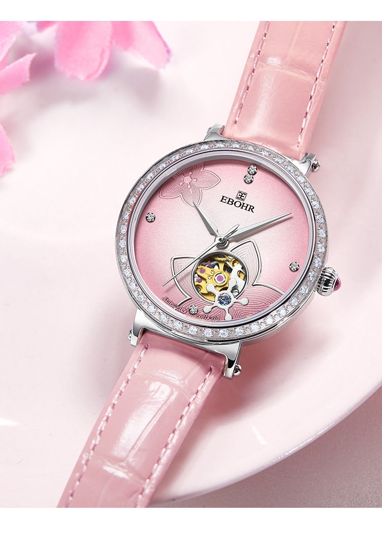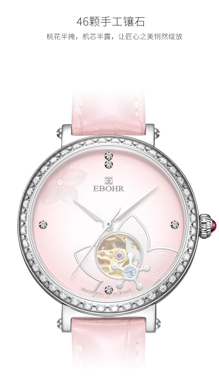 依波表EBOHR 卡纳系列时尚潮流镂空进口机械机芯46颗钻女士腕表5091