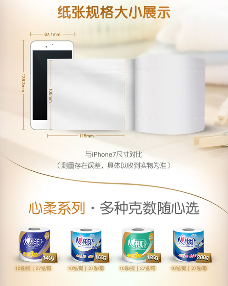 心相印 心柔有芯卷纸3层140g*27卷 整箱 包邮 手纸 卷纸 卷筒纸 卫生纸