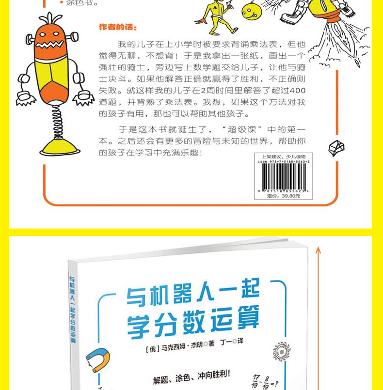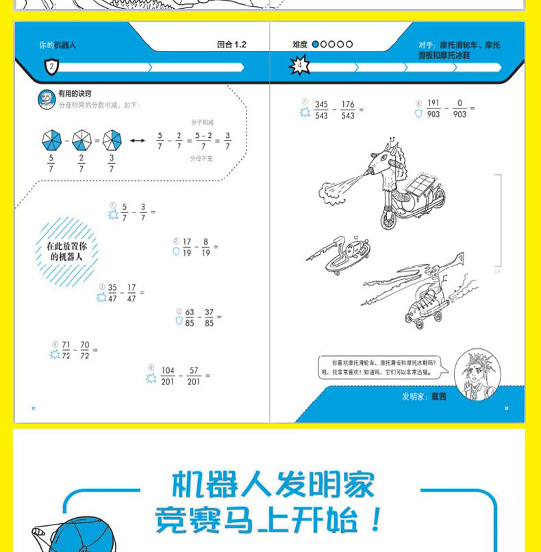 与机器人一起学分数运算 有趣的数学联赛系列 孩子喜欢的趣味数学书 让孩子边玩边学 有效提高学习效率数学知识大全乘法表学习方法