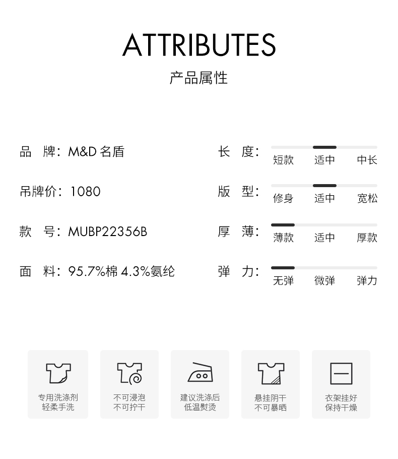 | 男装品牌: M&D/名盾 | 面料: 长绒棉 |