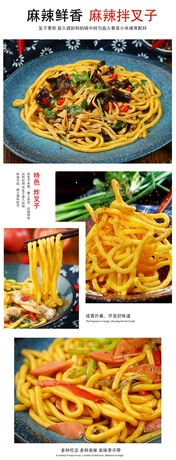 1.戴家叉子:开水下锅,煮三分钟至无硬芯,自然散开(无需搅拌),捞出放入碗中,根据个人口味添加调料,加入煮面水没过叉子即可。