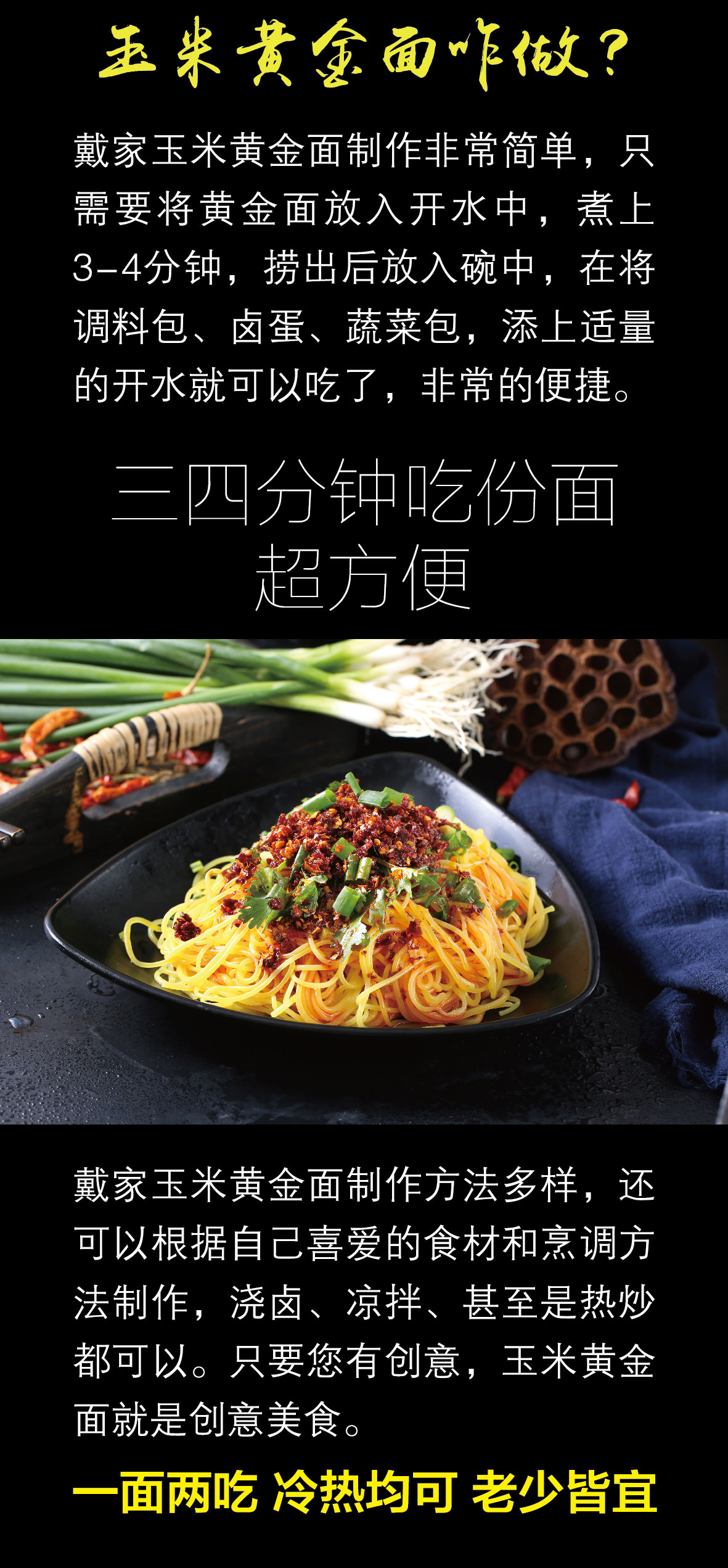 2.黄金面:开水下锅,煮3-4分钟无硬芯后,捞出放入碗中,根据个人口味添加调料,加入煮面水,没过黄金面即可。