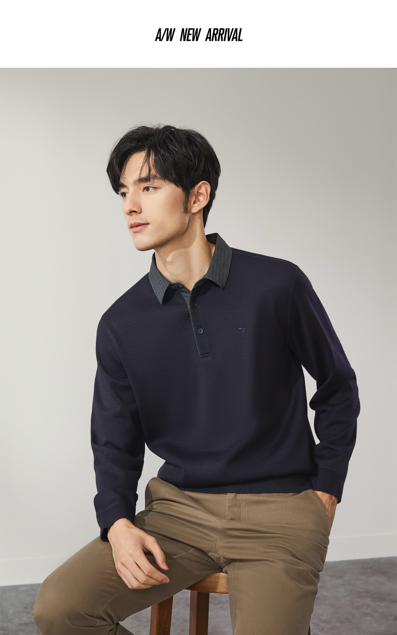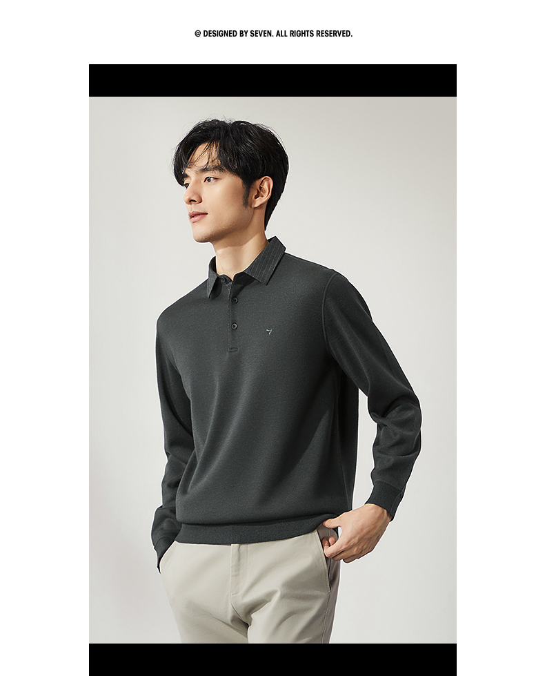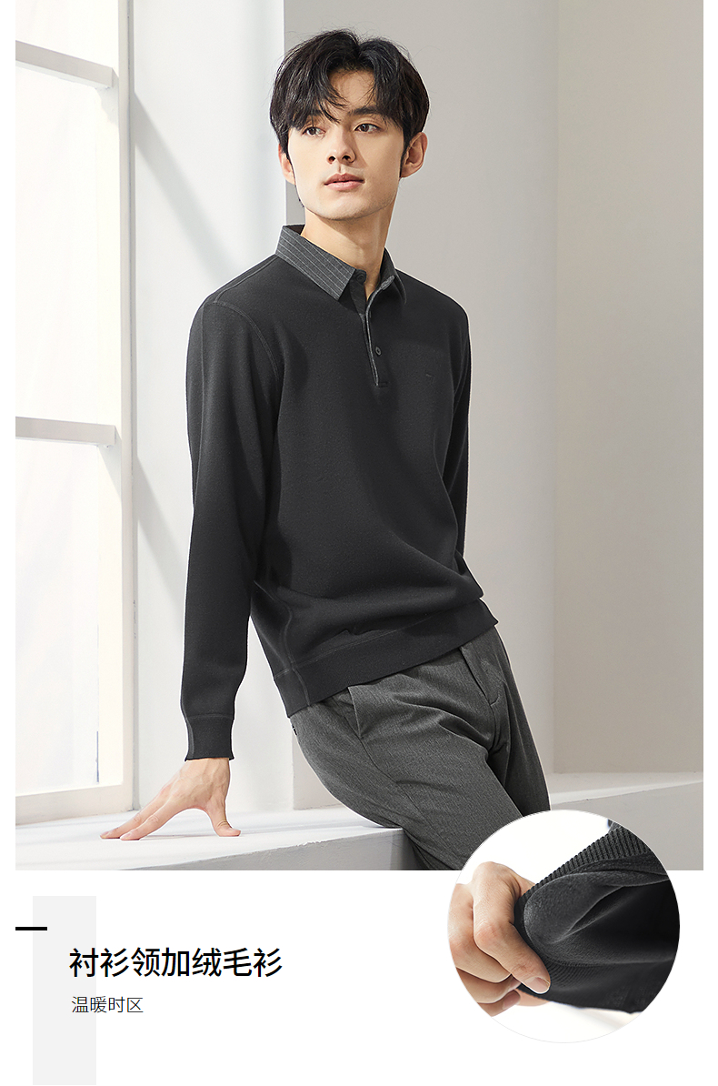 【特价】【加绒半开衫】柒牌毛衣男2024冬季新款衬衫领保暖时尚休闲针织衫 127Y70740