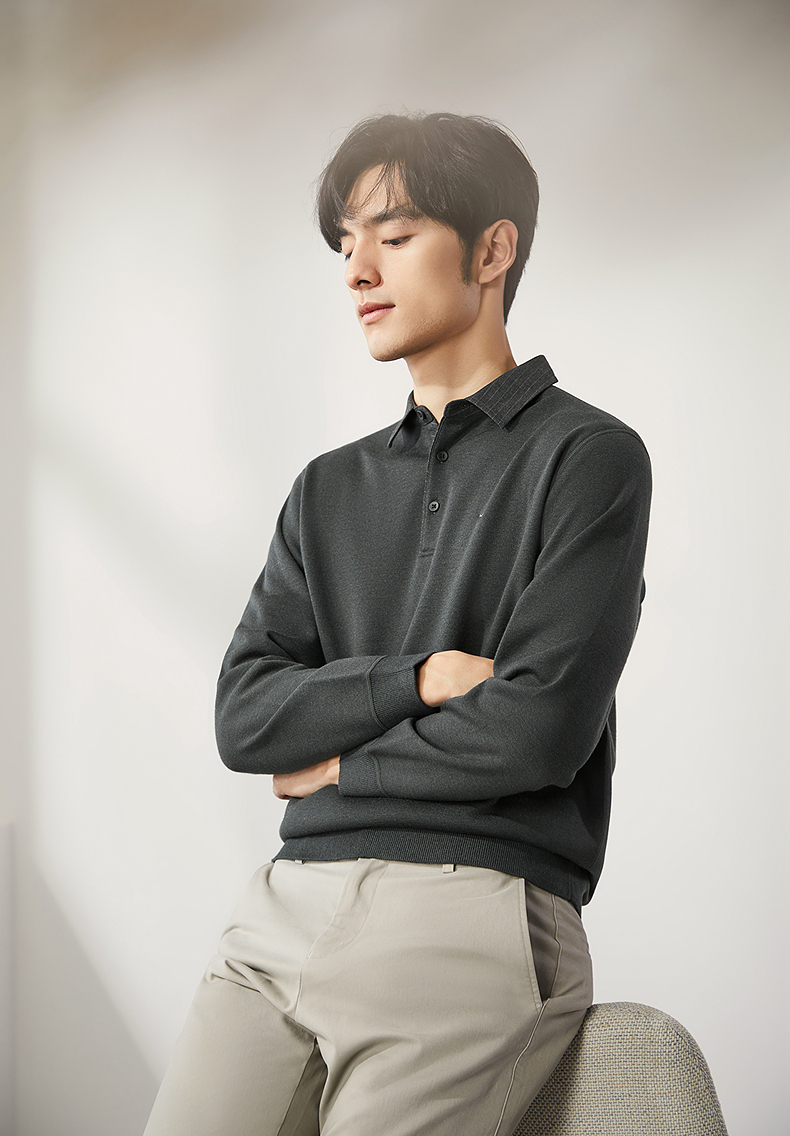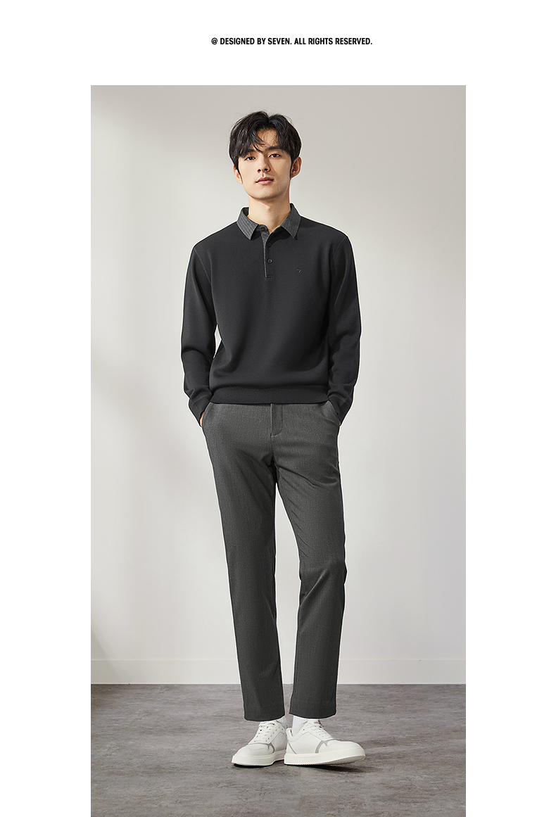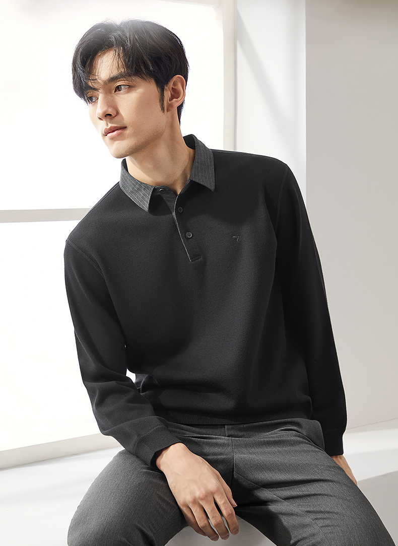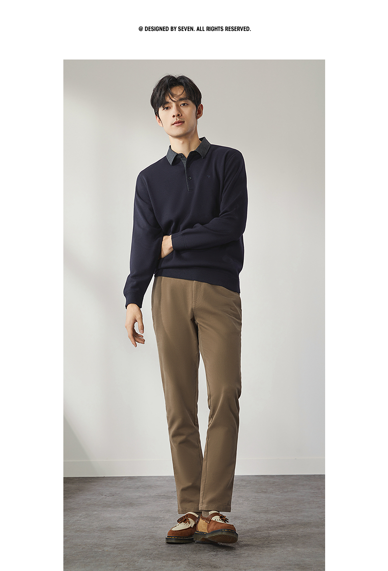 【特价】【加绒半开衫】柒牌毛衣男2024冬季新款衬衫领保暖时尚休闲针织衫 127Y70740