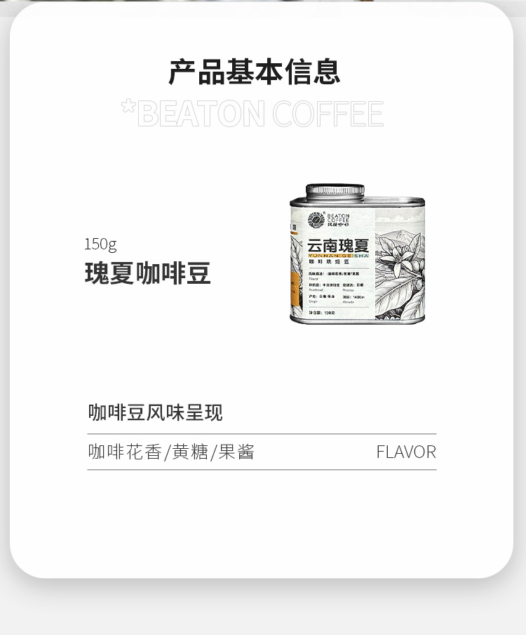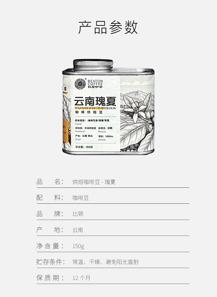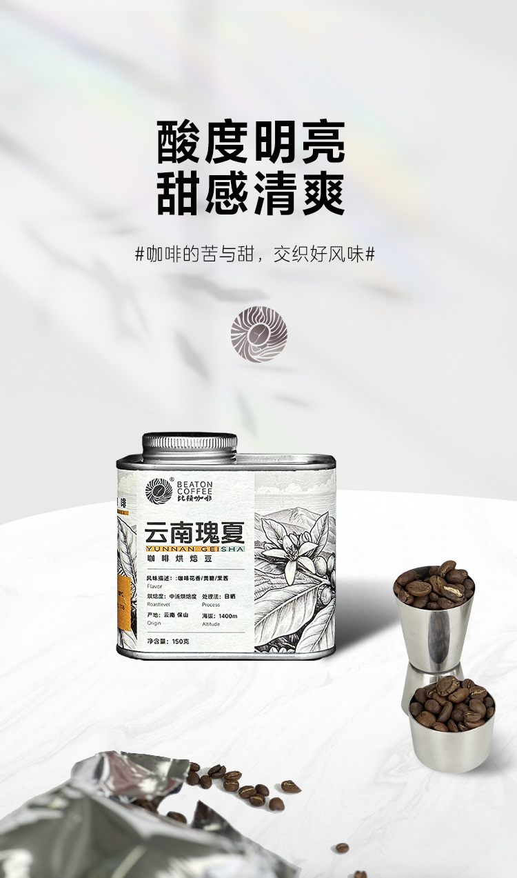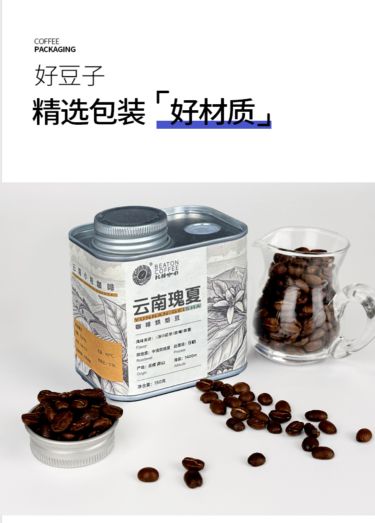 云南保山小粒咖啡 比顿 云南瑰夏咖啡豆150克/罐 日晒处理法