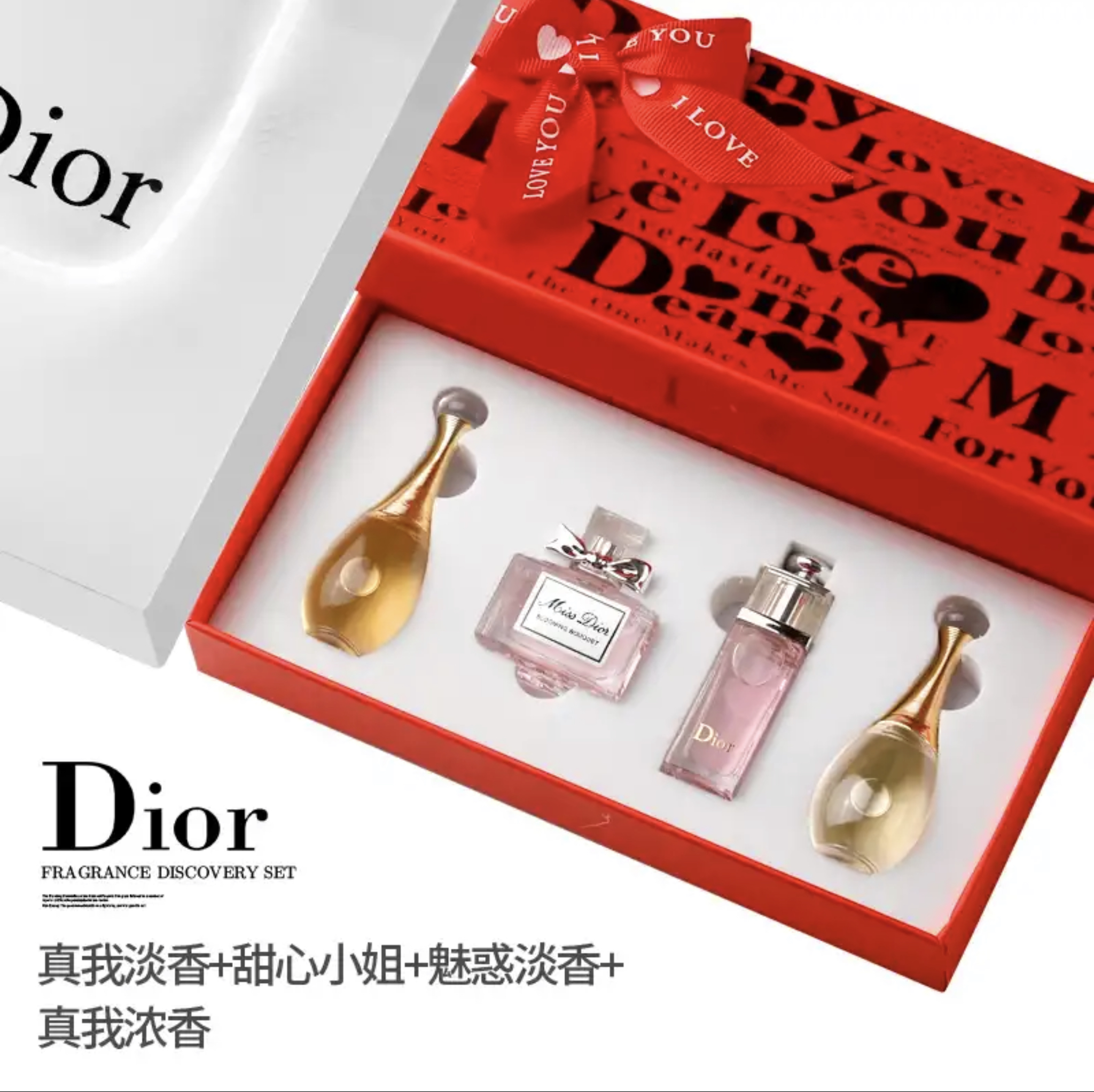【授权商品】迪奥香水小样红色礼盒 三件套/四件套