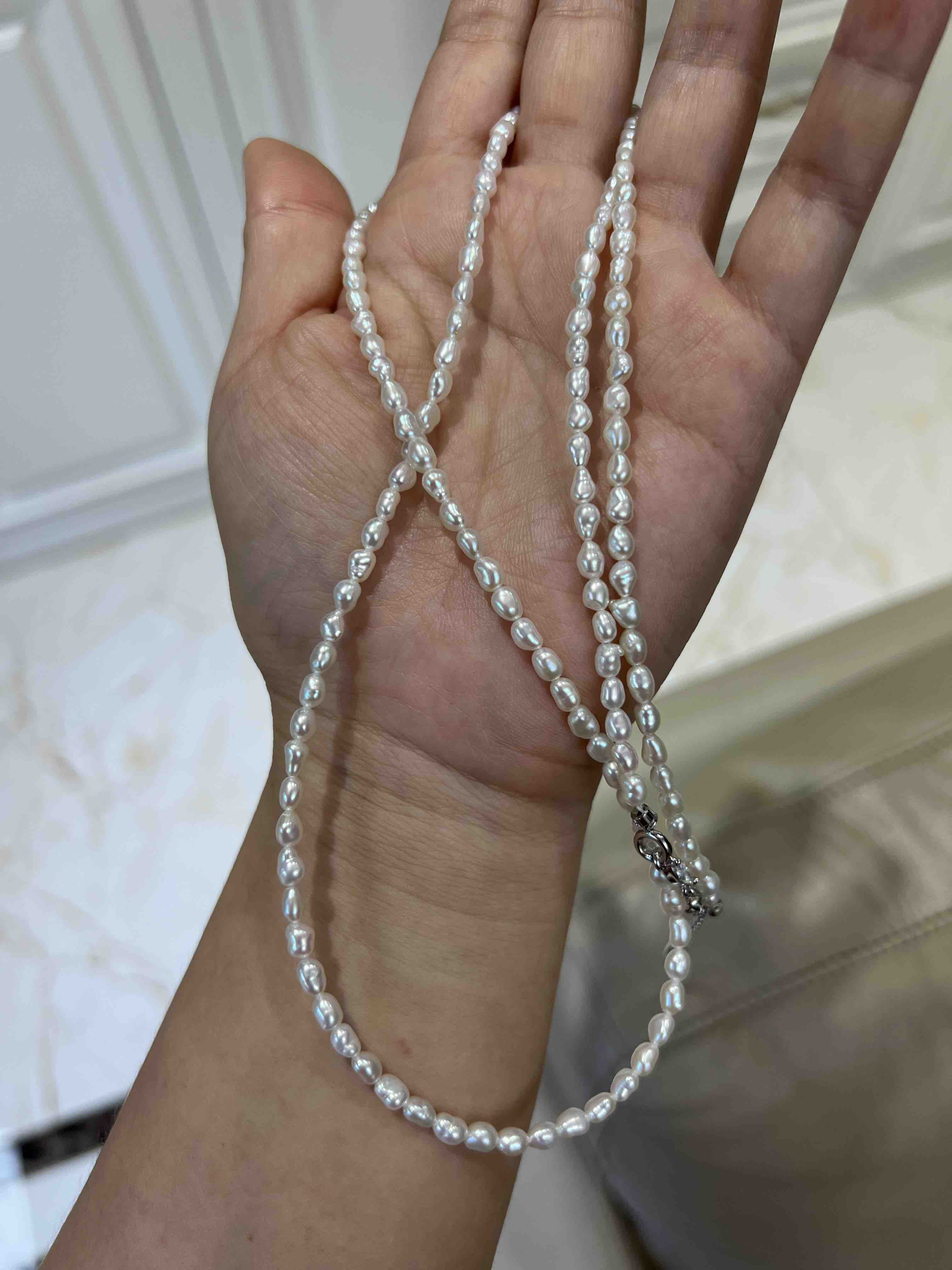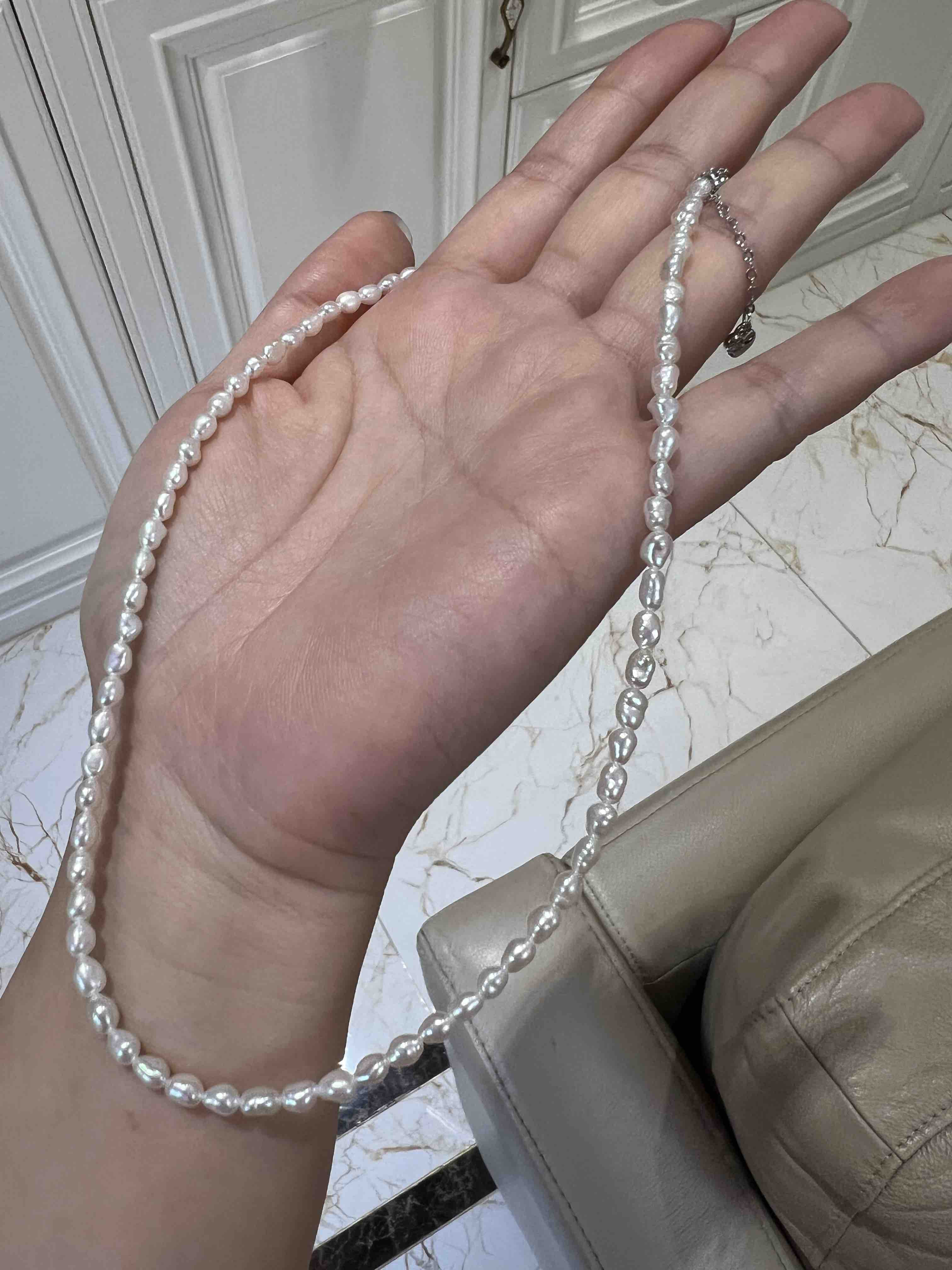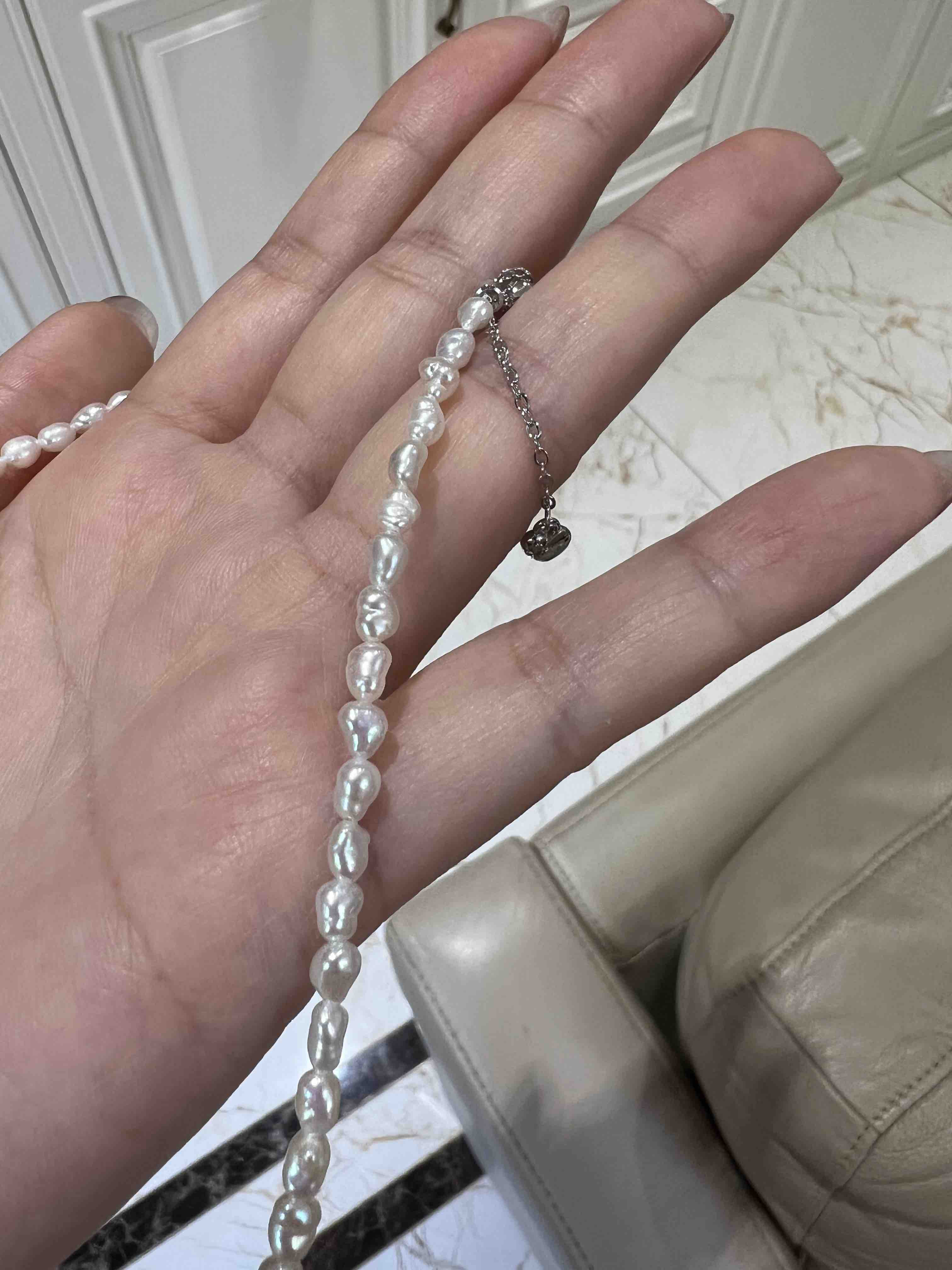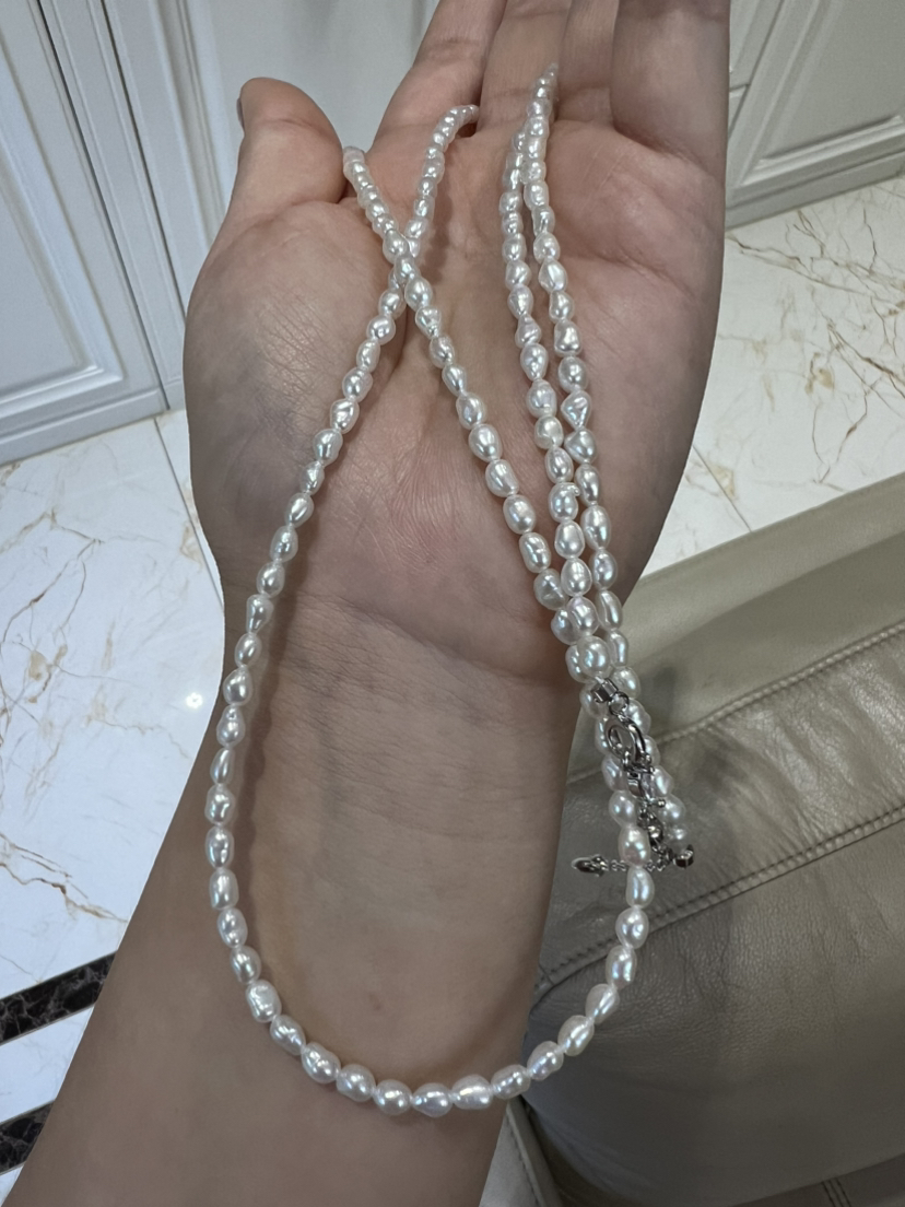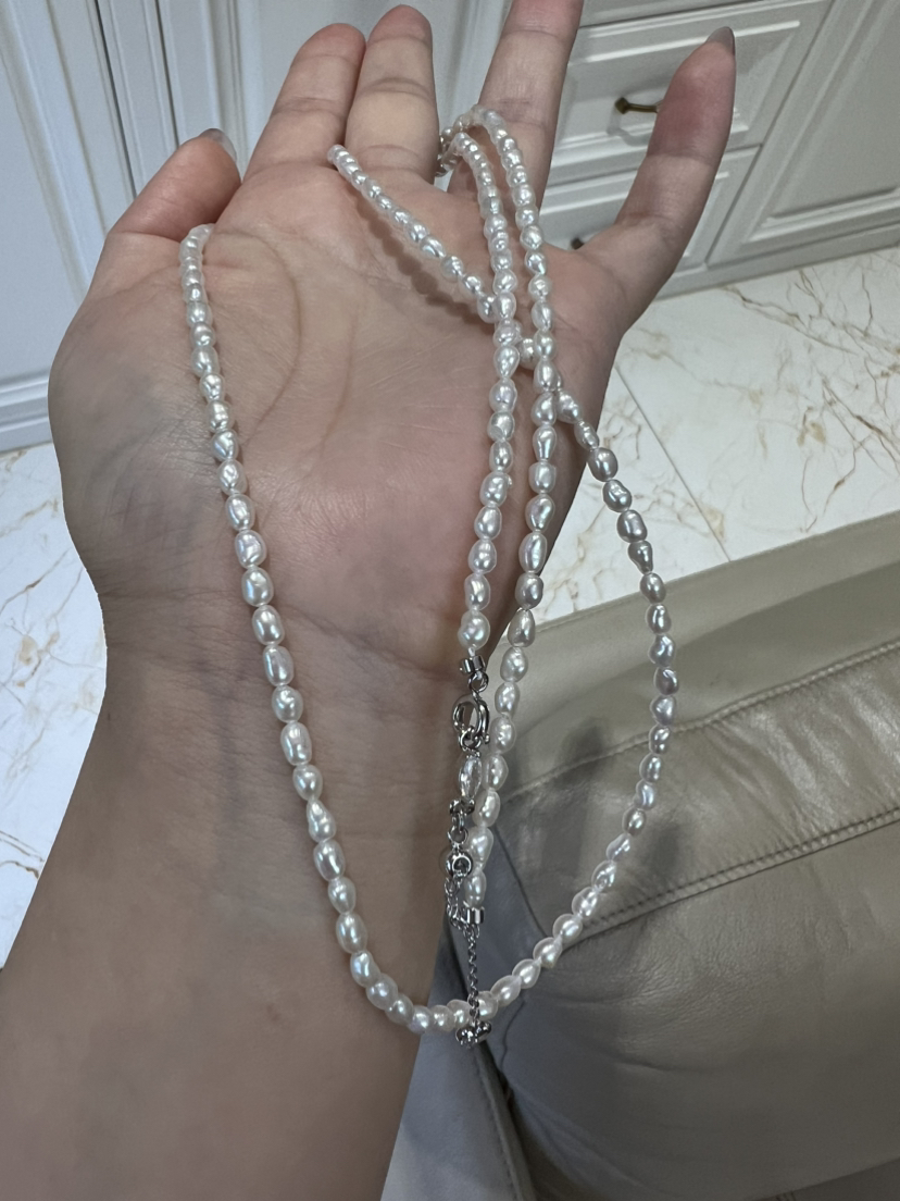 越来越多的奢侈品喜欢keshi珍珠,大概就是这种全部都是珍珠质的丝绒质感,给人无与伦比的享受,甚至很多高贵成衣都喜欢用上keshi珍珠。整条珍珠链长40cm,延长链5cm,这种珠子就特别适合叠加,混搭,单独带一条很仙女,小清新。混搭叠带,很时髦