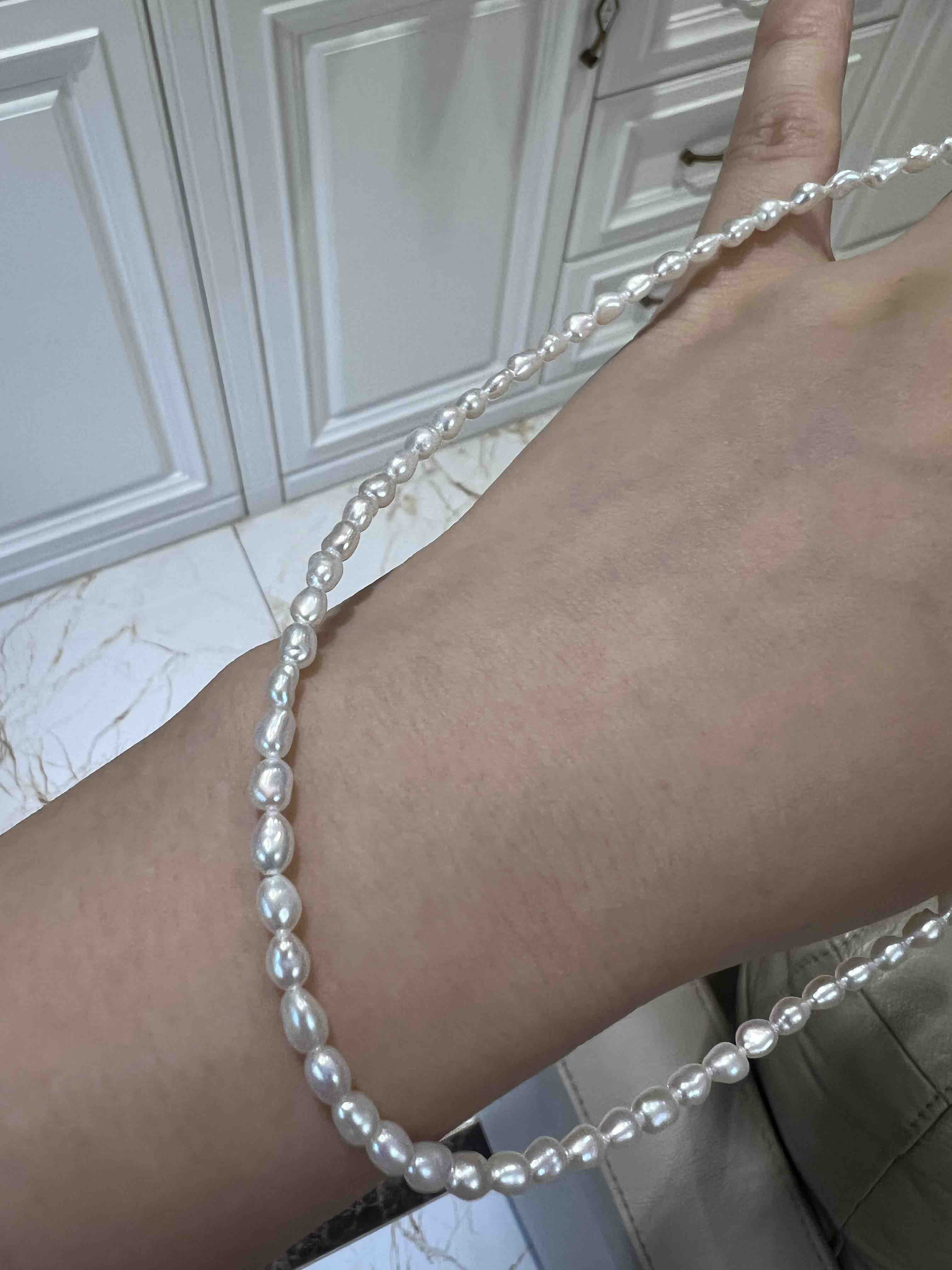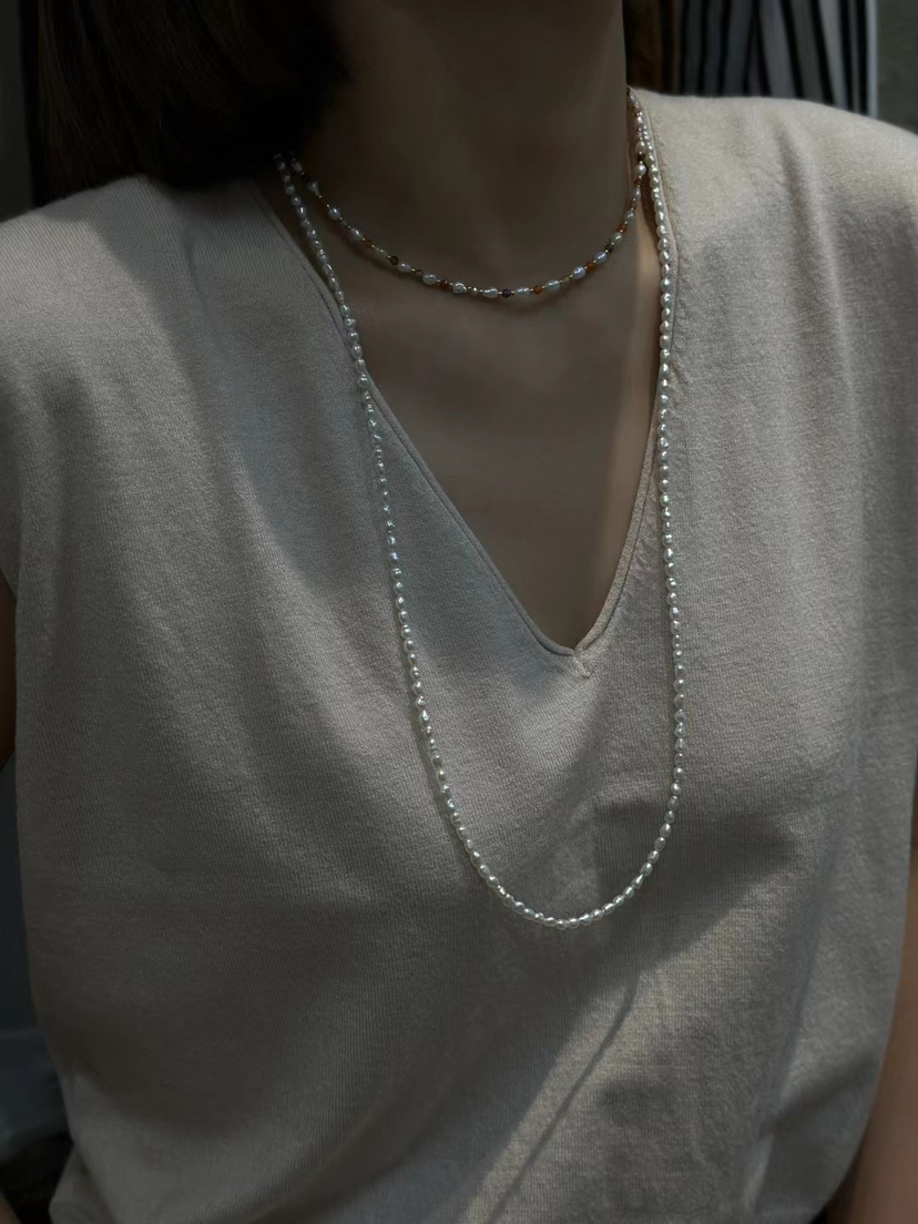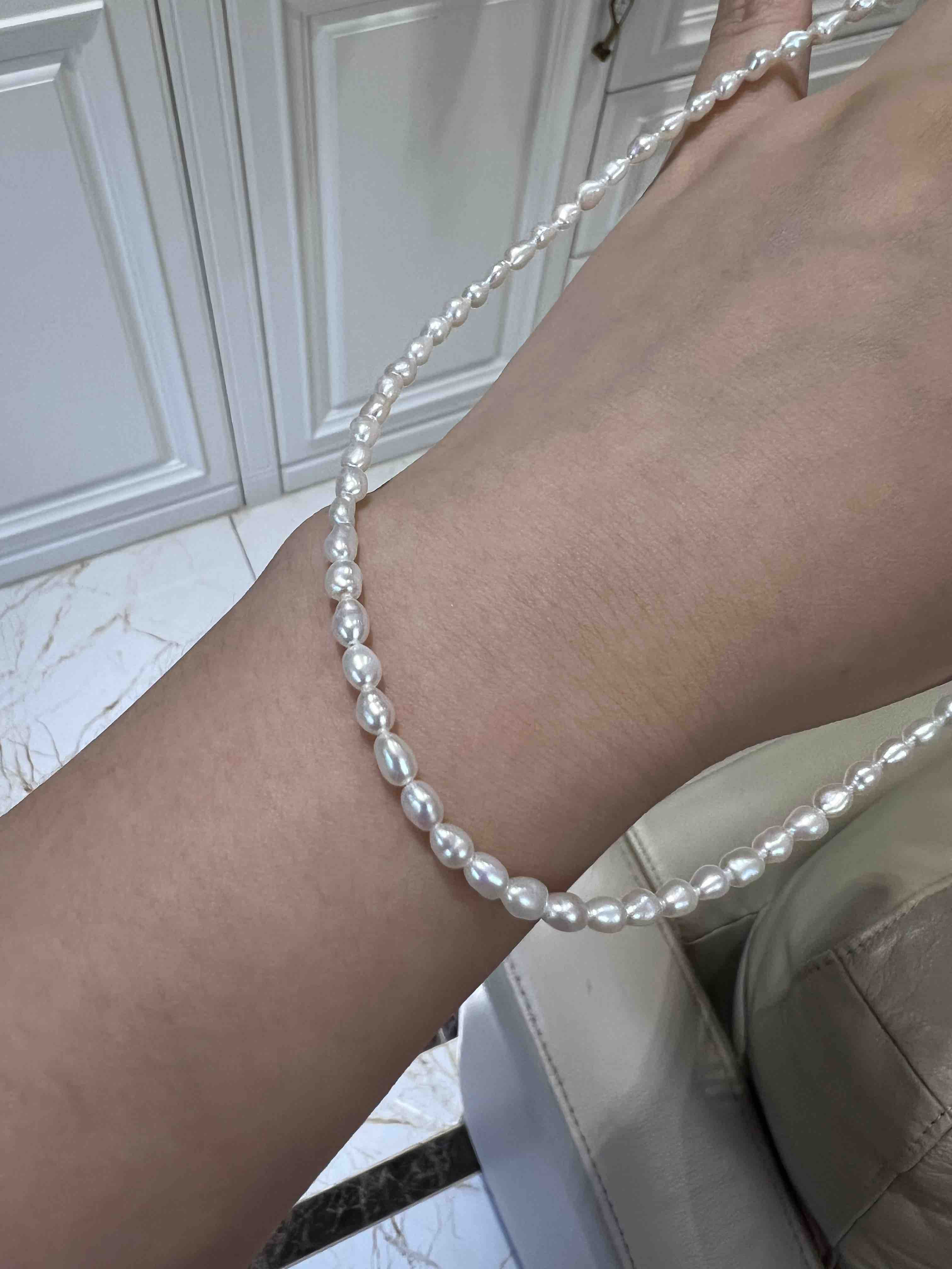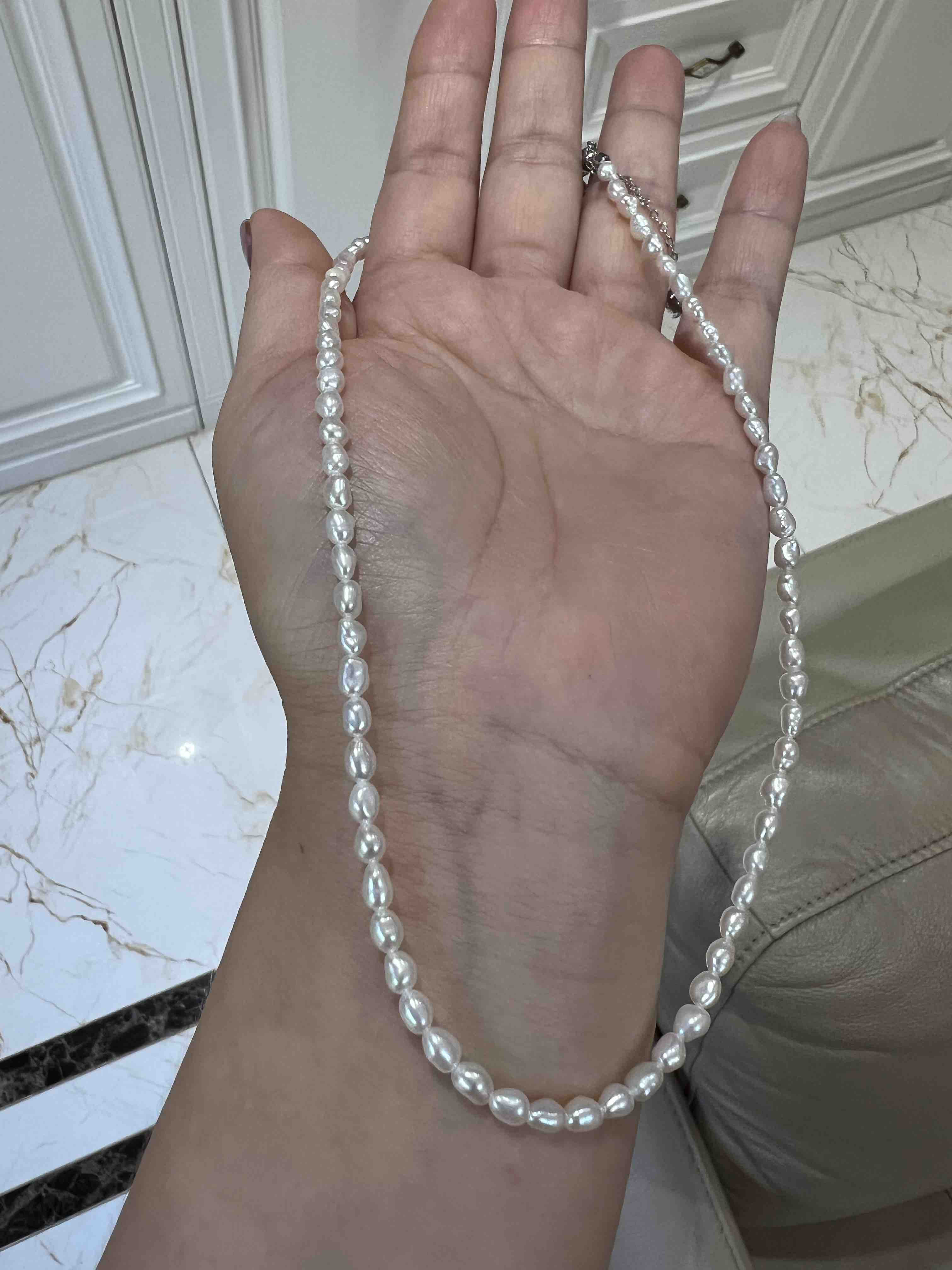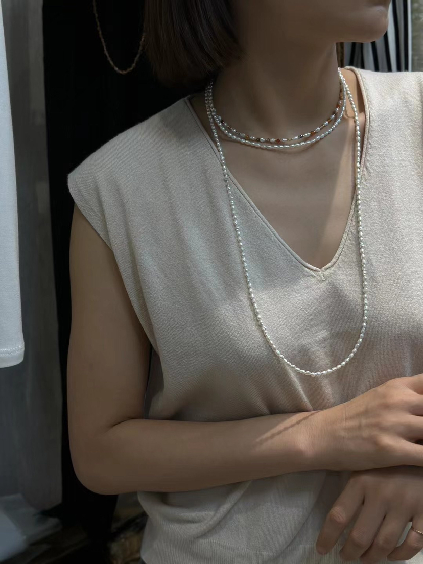 越来越多的奢侈品喜欢keshi珍珠,大概就是这种全部都是珍珠质的丝绒质感,给人无与伦比的享受,甚至很多高贵成衣都喜欢用上keshi珍珠。整条珍珠链长40cm,延长链5cm,这种珠子就特别适合叠加,混搭,单独带一条很仙女,小清新。混搭叠带,很时髦