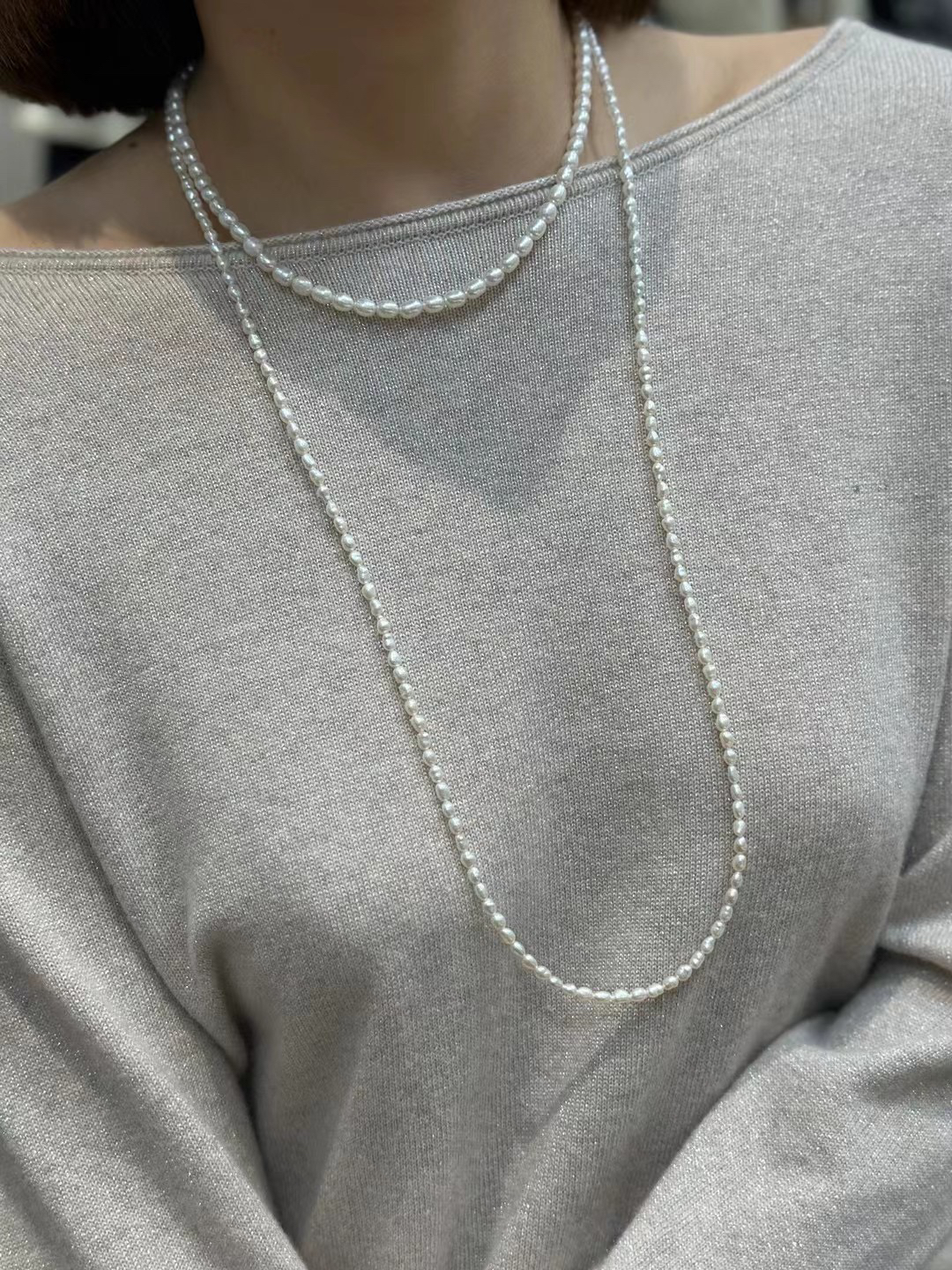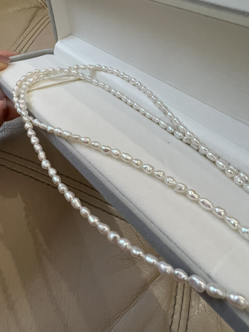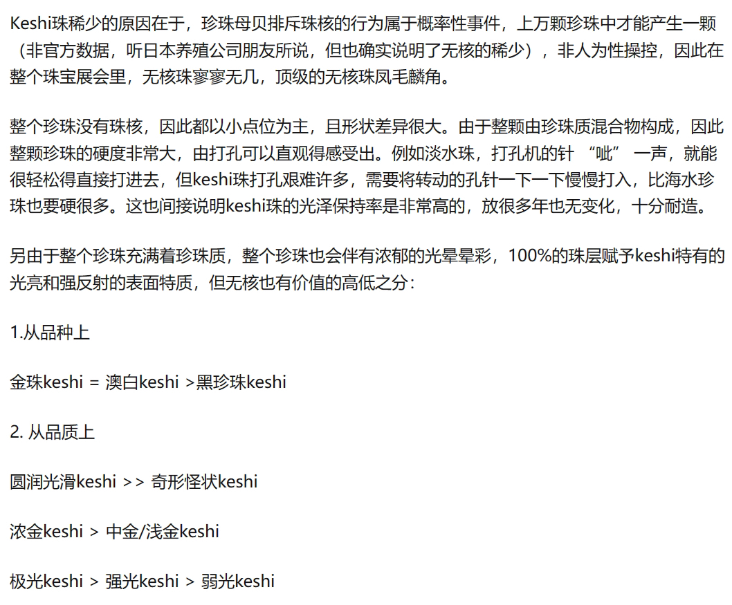 这个点位的整了两个款式,40cm的,80cm的,80cm的做毛衣链就很合适。养殖技术,愈发成熟,又大又圆的珠子,不稀奇的,这种小概率事件的无核keshi珍珠,算是回归到珍珠养殖技术之前的产品。光泽保持的很久很久,甚至比你还久,哈哈。