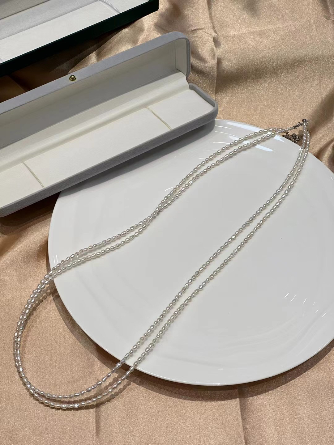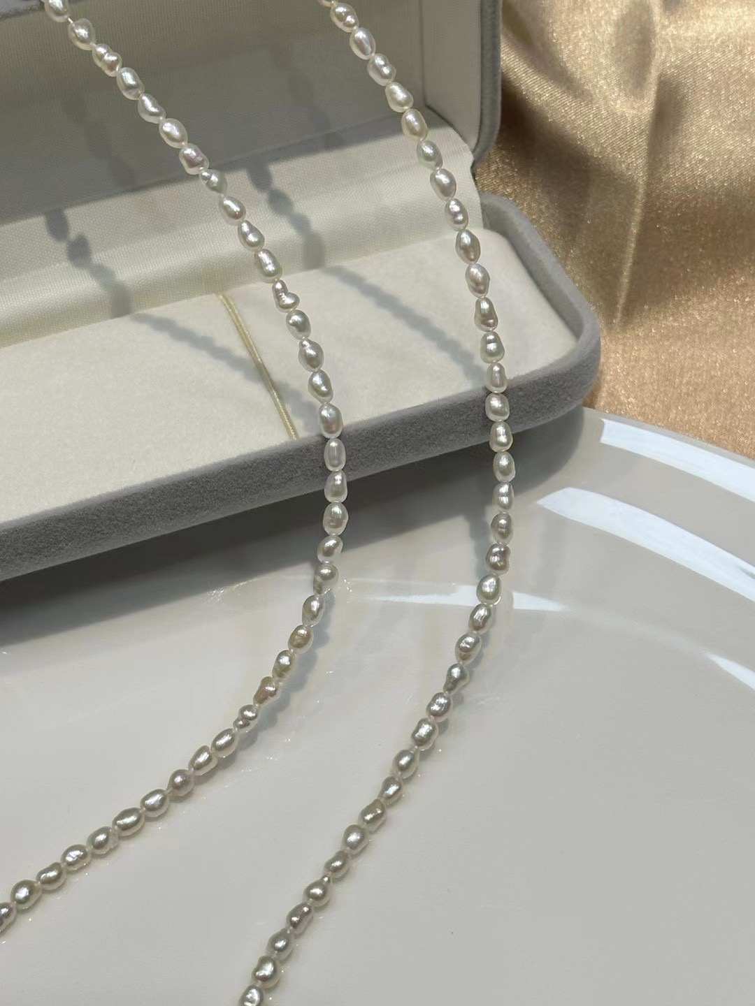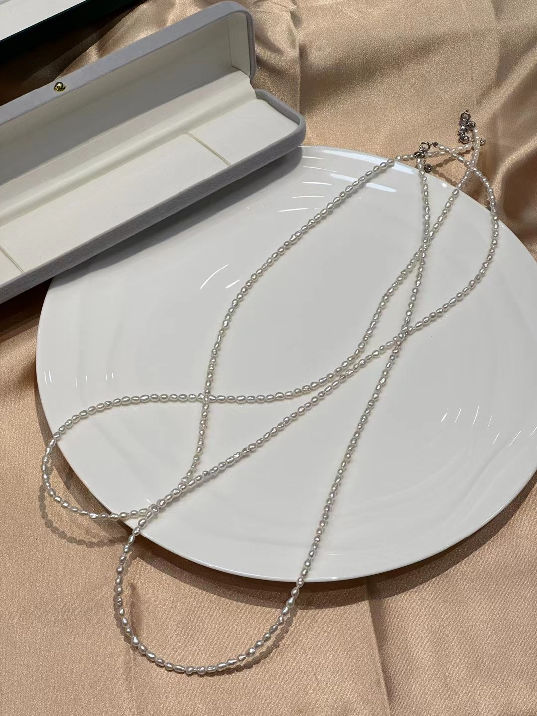 这个点位的整了两个款式,40cm的,80cm的,80cm的做毛衣链就很合适。养殖技术,愈发成熟,又大又圆的珠子,不稀奇的,这种小概率事件的无核keshi珍珠,算是回归到珍珠养殖技术之前的产品。光泽保持的很久很久,甚至比你还久,哈哈。