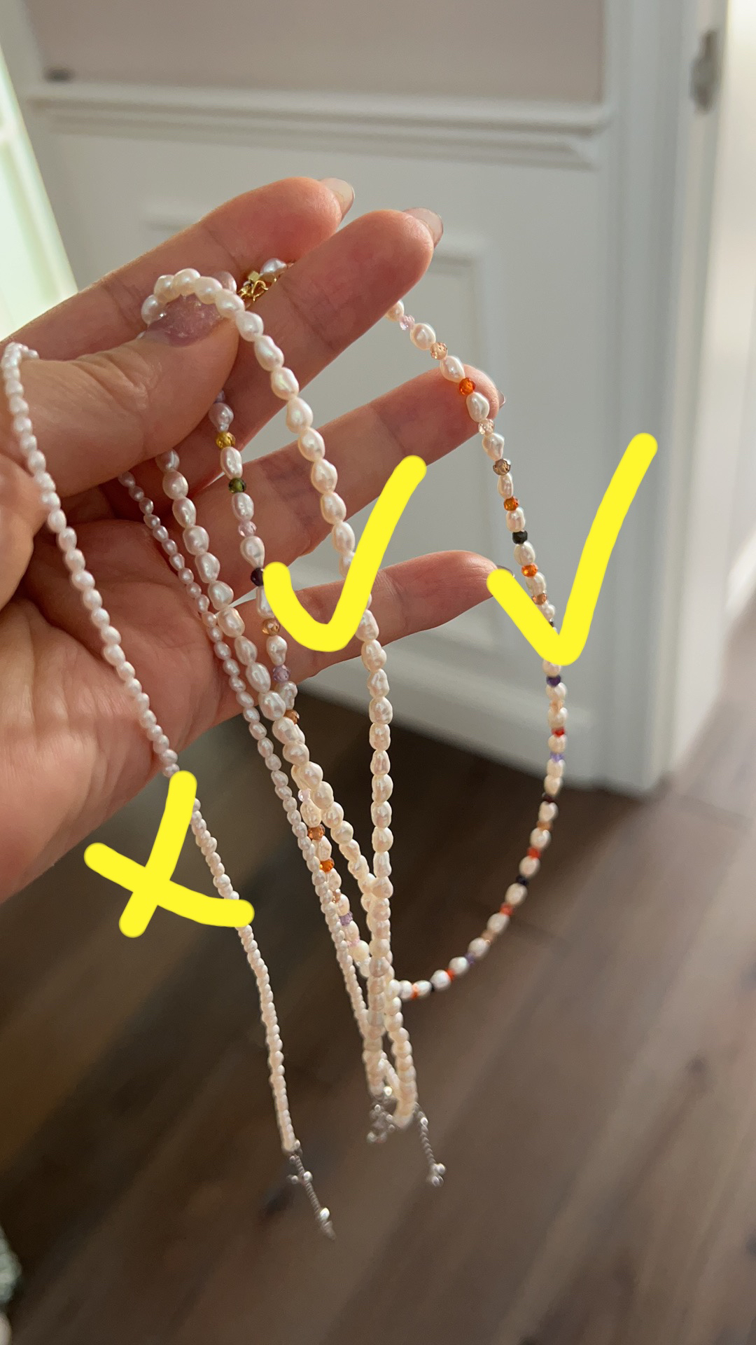 超性价比 3.5-4mm 极强光 无核淡水野生keshi 两种长度