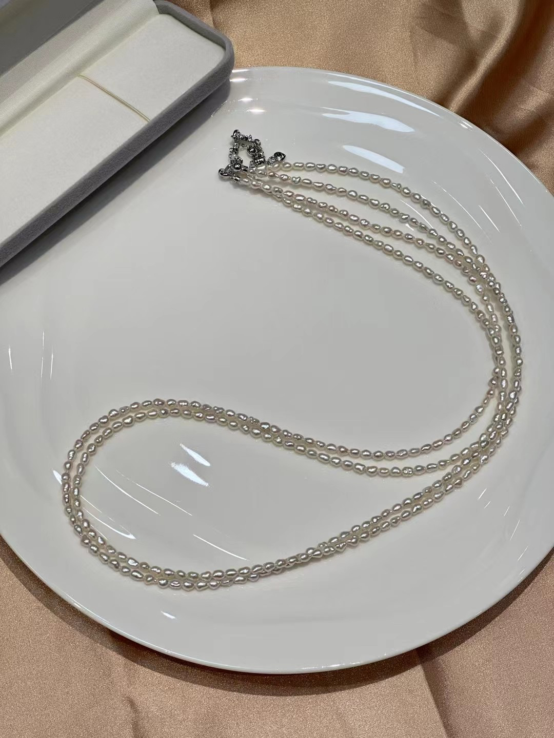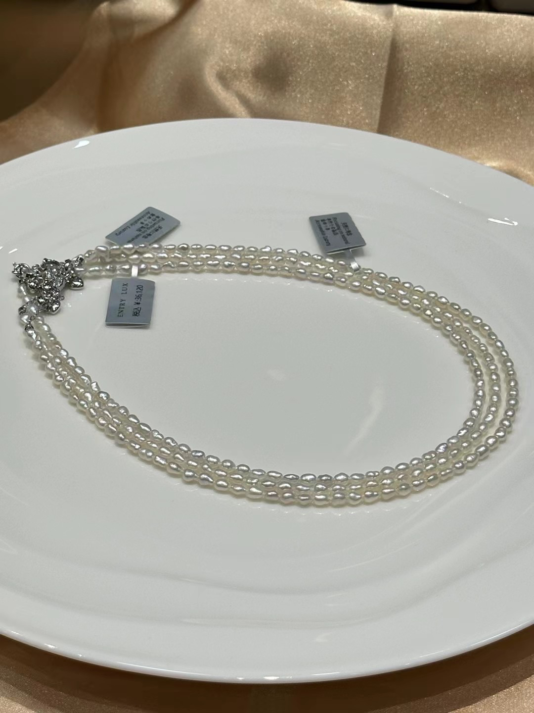 这是我自己定制的,所以说整个市场上找不到,如果说不选珠子,大概100来块都能买到,如果要选珠子,强光,3.5-4mm的点位,肯定会比其他的贵许多,为啥女王的珍珠皇冠啊,项链啊,随随便便就能拍卖亿来亿去,就是这些珍珠都是在珍珠养殖技术之前,无核的天然珍珠,整个珠子都是珍珠质,才能百年光泽不变。