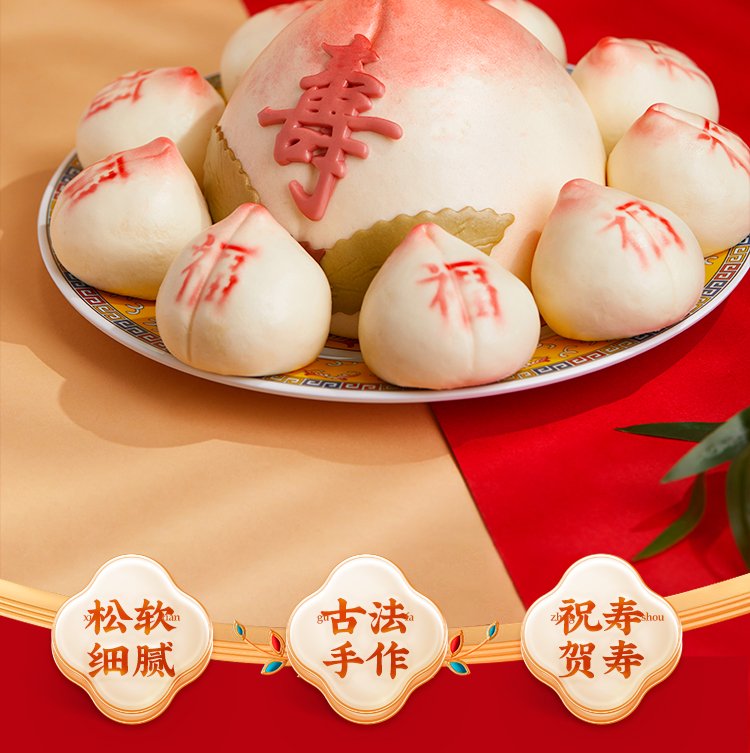 御茶膳房寿桃馒头老人生日蛋糕糕点老北京过寿点心祝寿大寿包礼盒【福寿仙桃】 商品图4