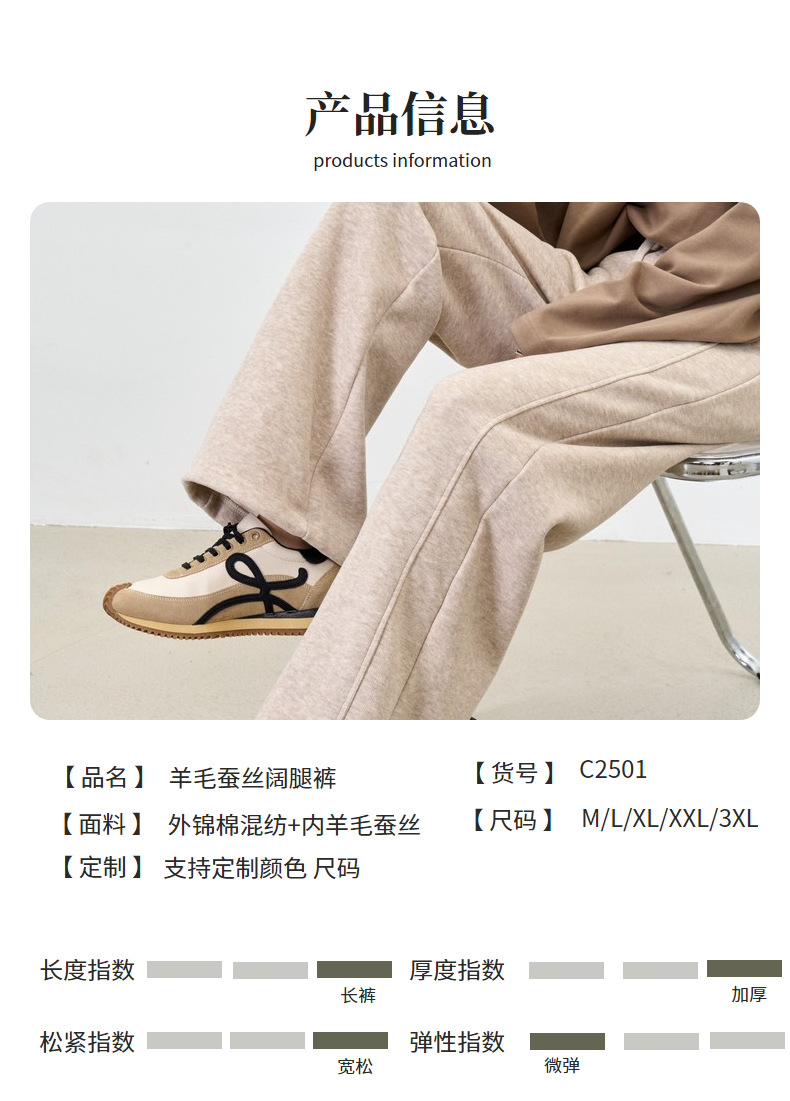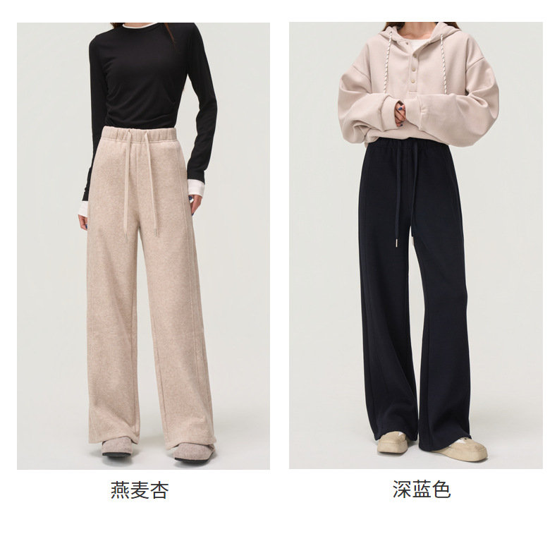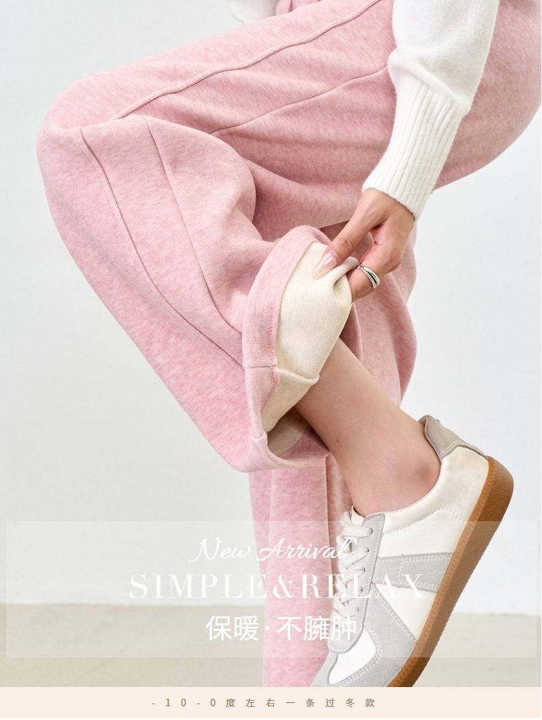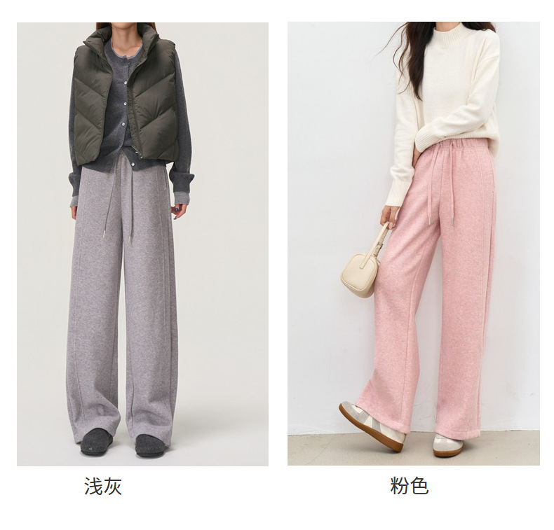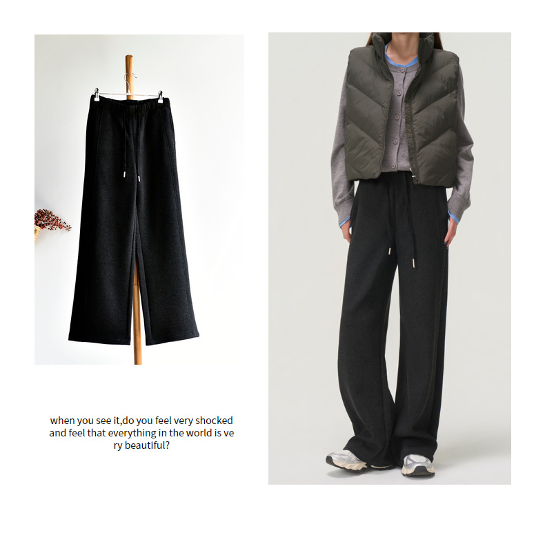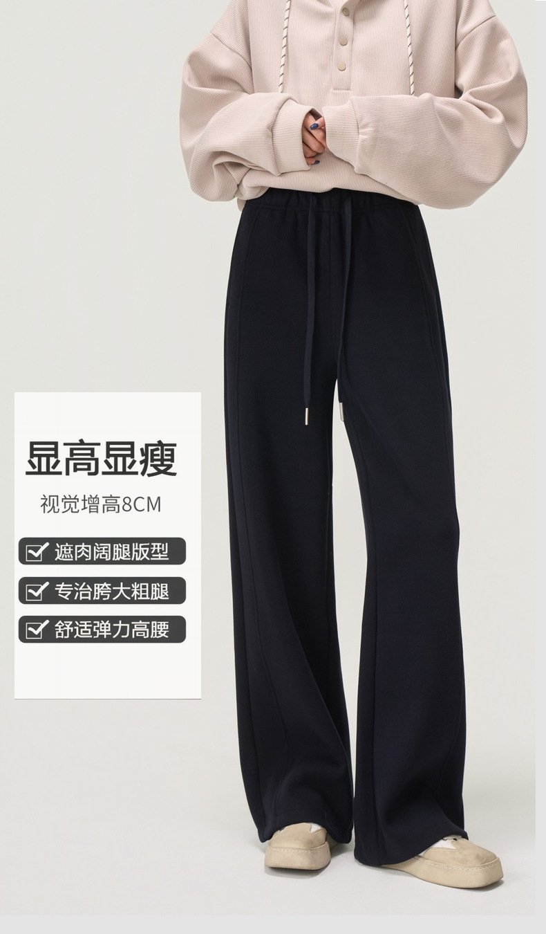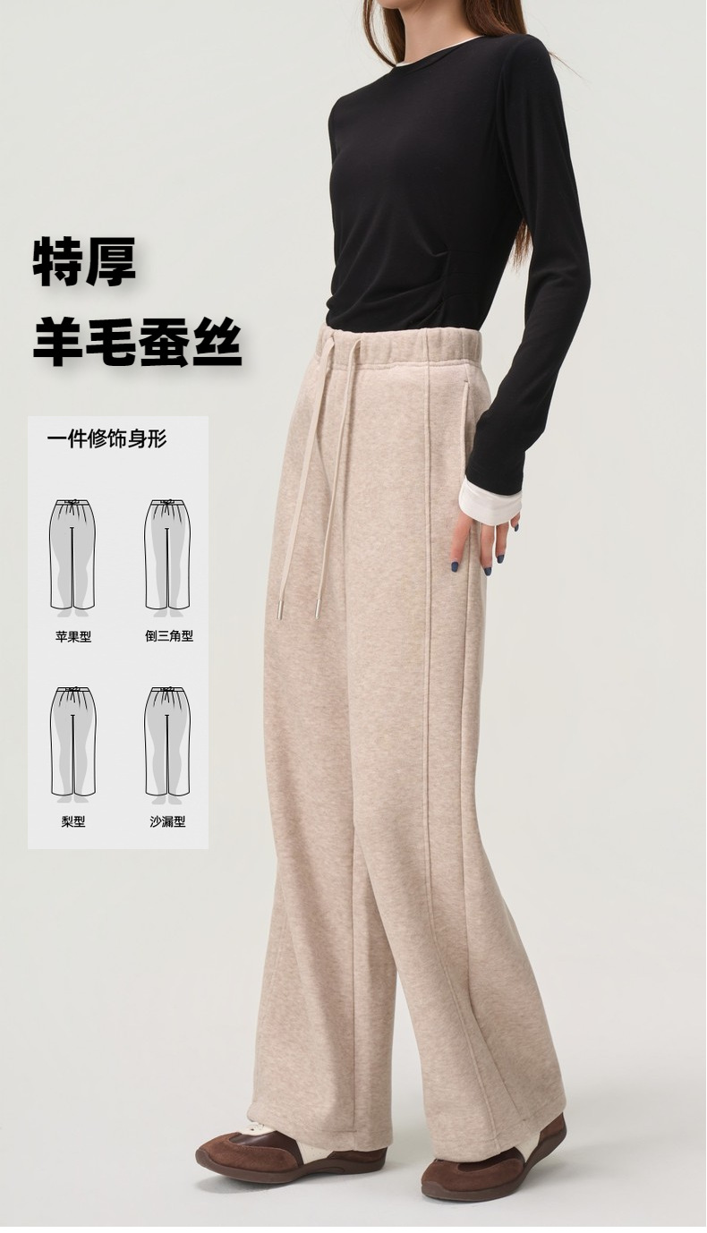 【羊毛蚕丝阔腿裤】冬季加绒加厚高腰休闲窄版直筒阔腿长裤