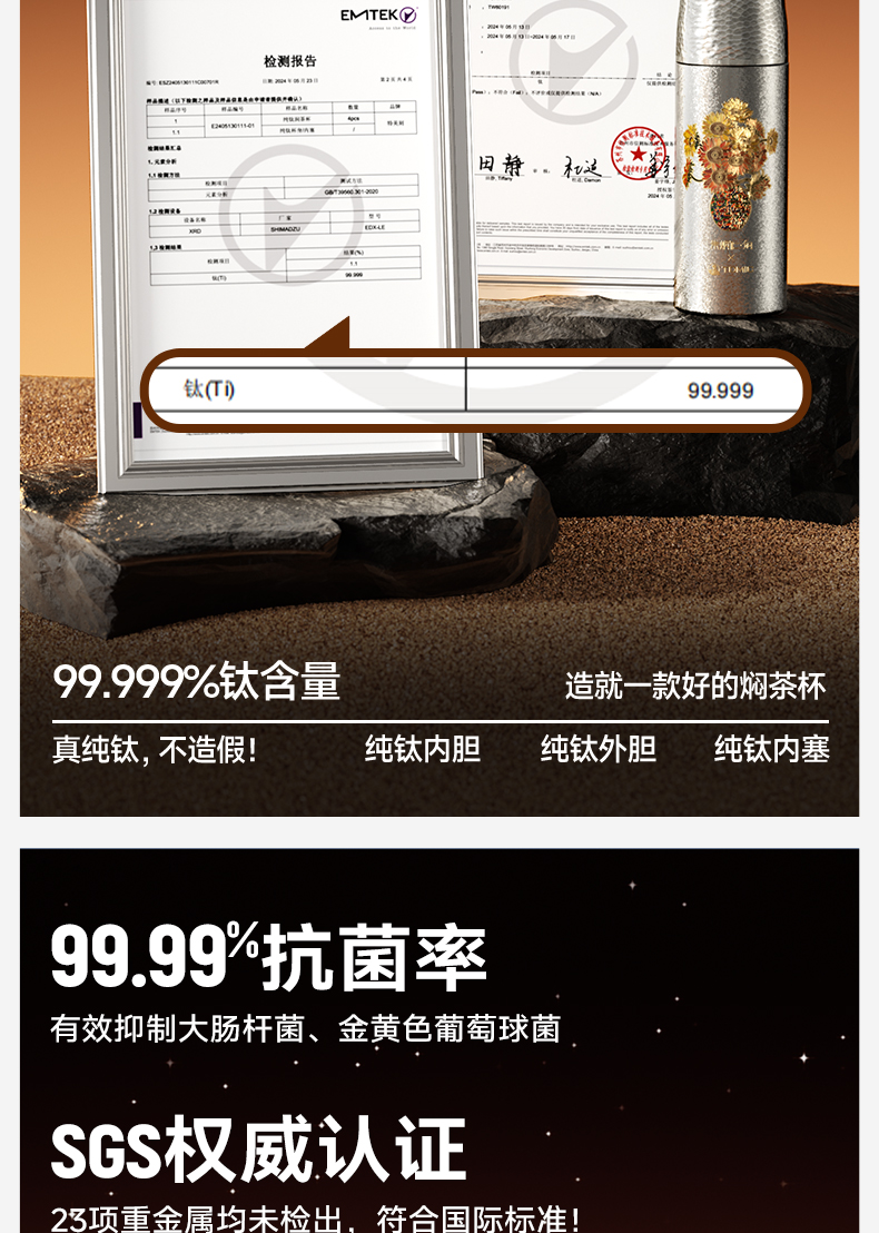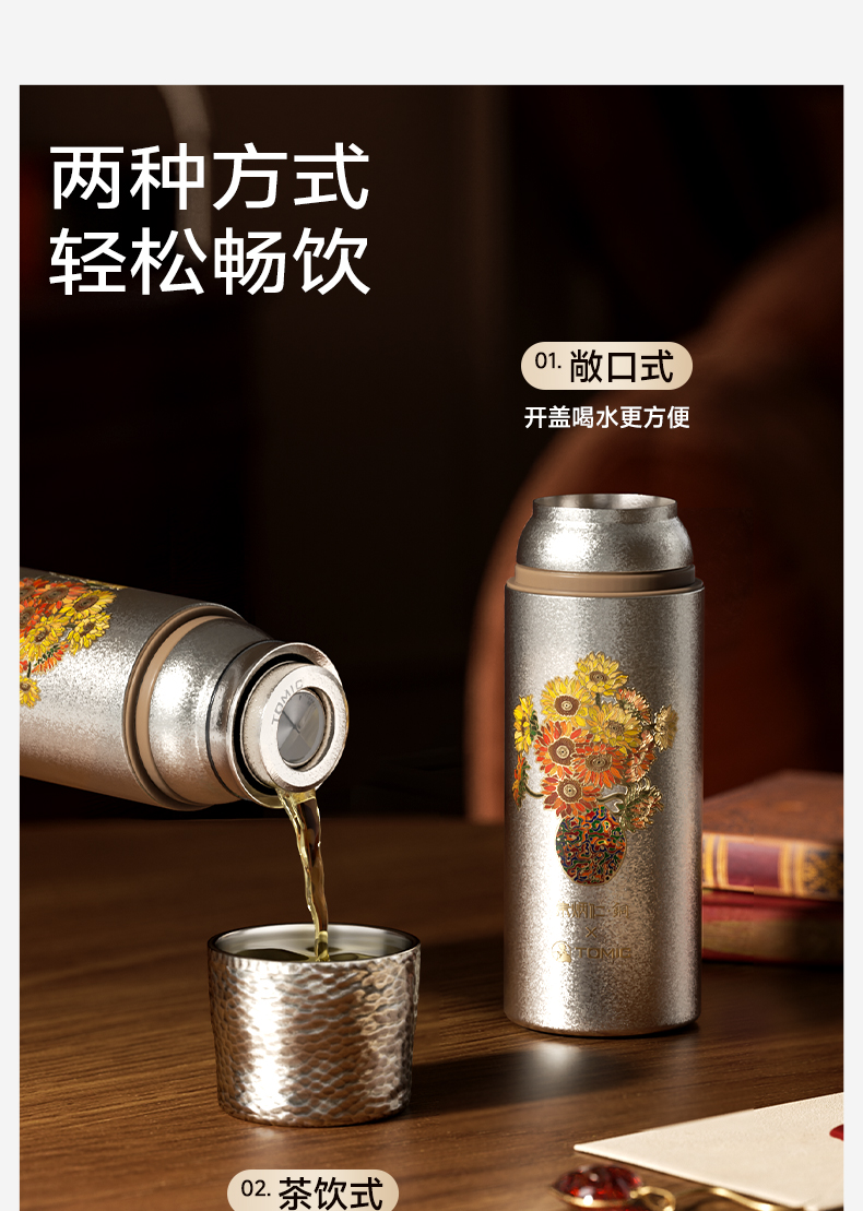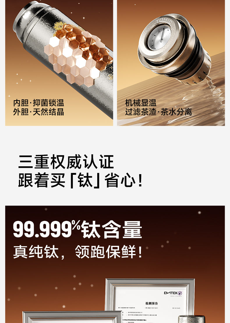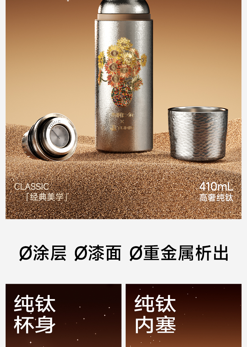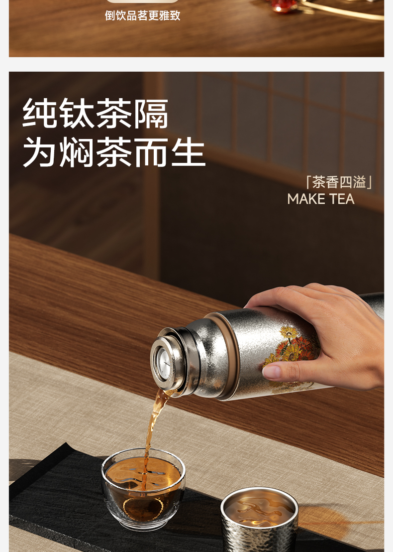 【送169元亚运会纪念保温杯】特美刻(TOMIC)双层纯钛杯保温杯朱炳仁铜联名茶水分离泡茶杯水杯