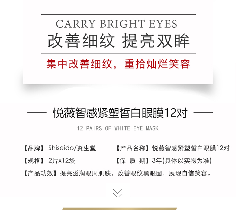 【年终限时大促】【保税仓直发·全球购】Shiseido/资生堂悦薇焕白紧致眼膜贴2片*12袋/盒【带盒】