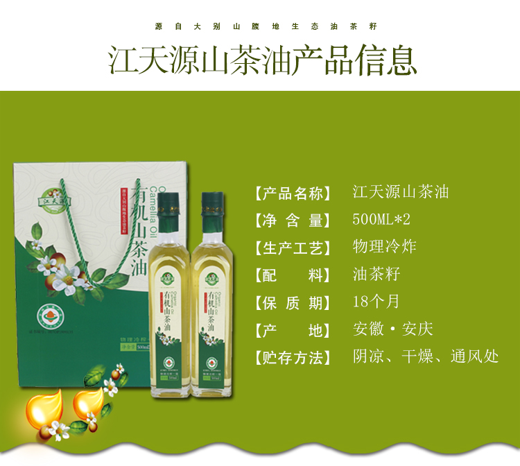 江天源纯正山茶油500ml 2 精选纯正油茶籽 家用食用好油