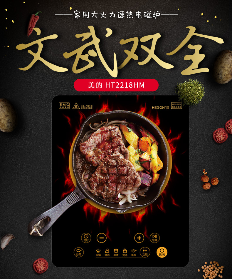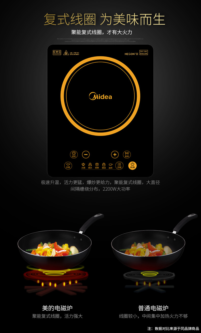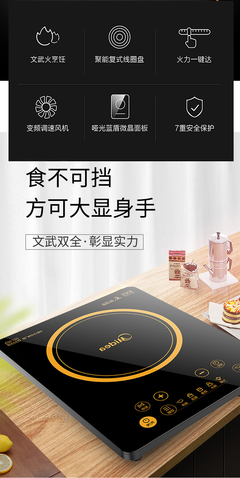 美的(Midea)电磁炉 HT2218HM 家用按键式大功率速热 定时黑晶面板 防水电磁炉灶智能 HT2218HM