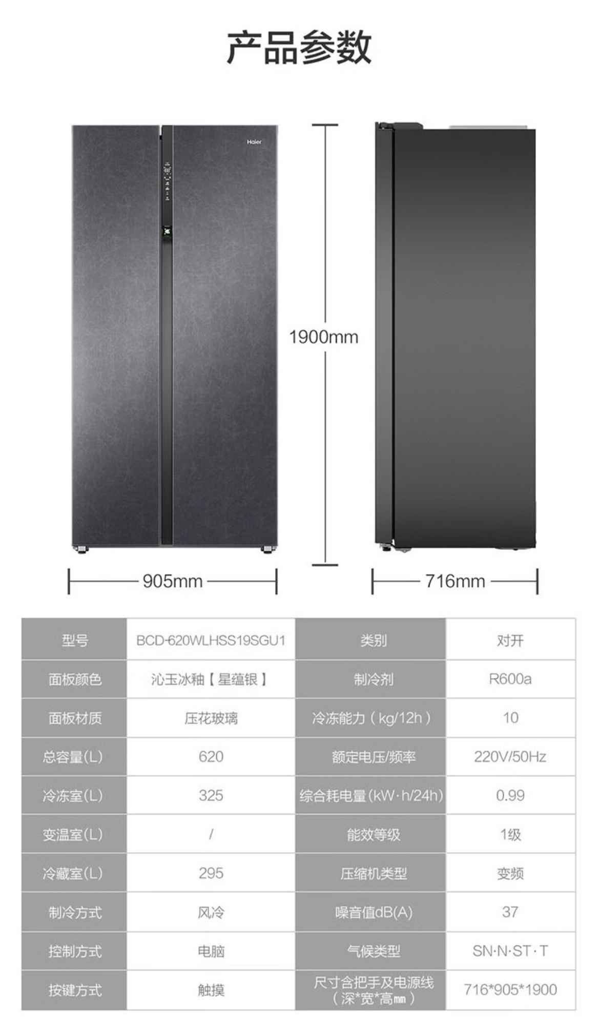 海尔(Haier)冰箱 BCD-620WLHSS19SGU1