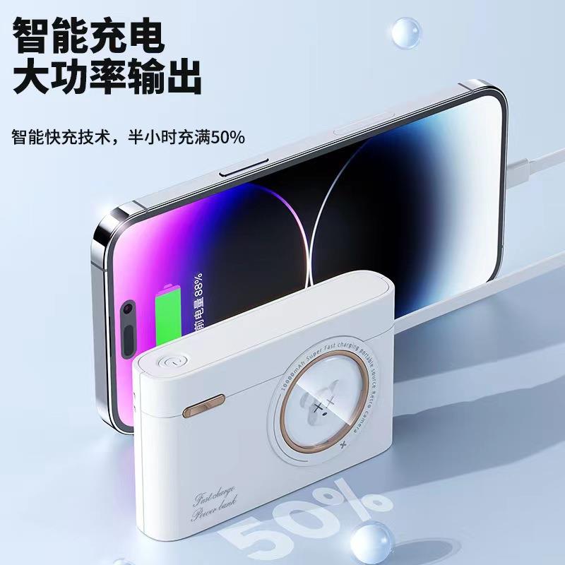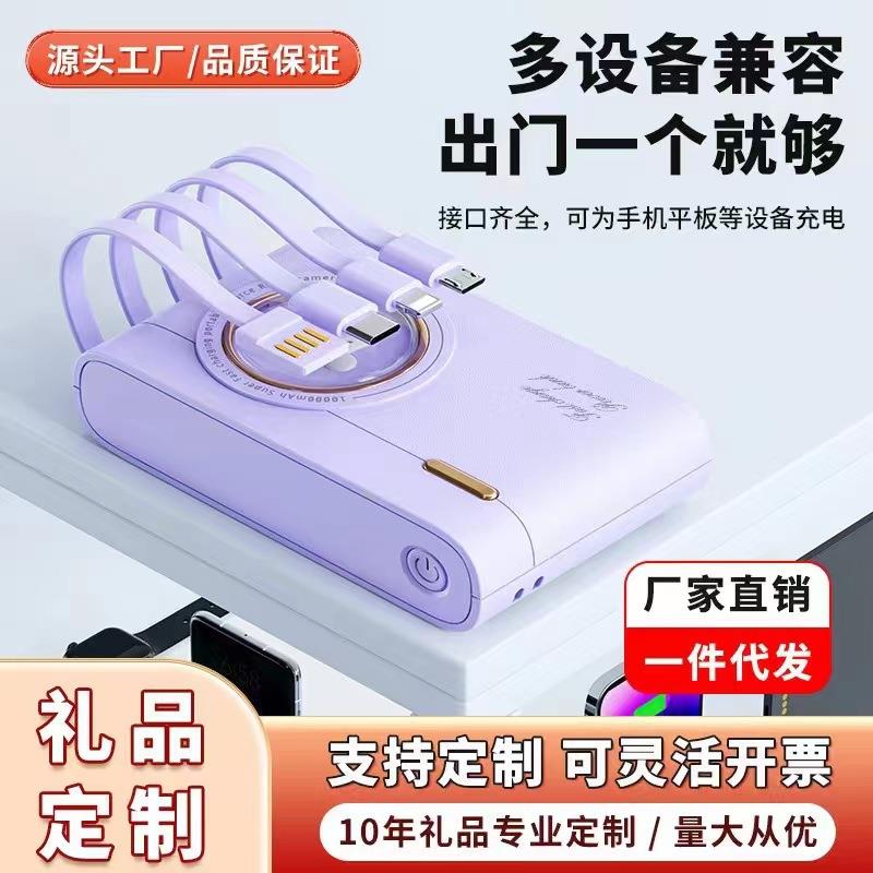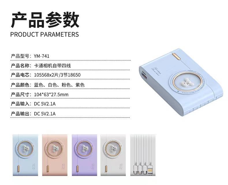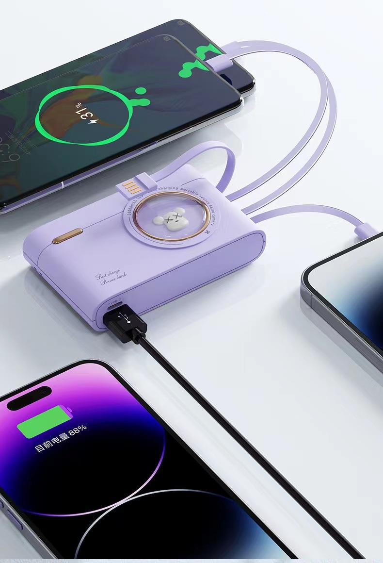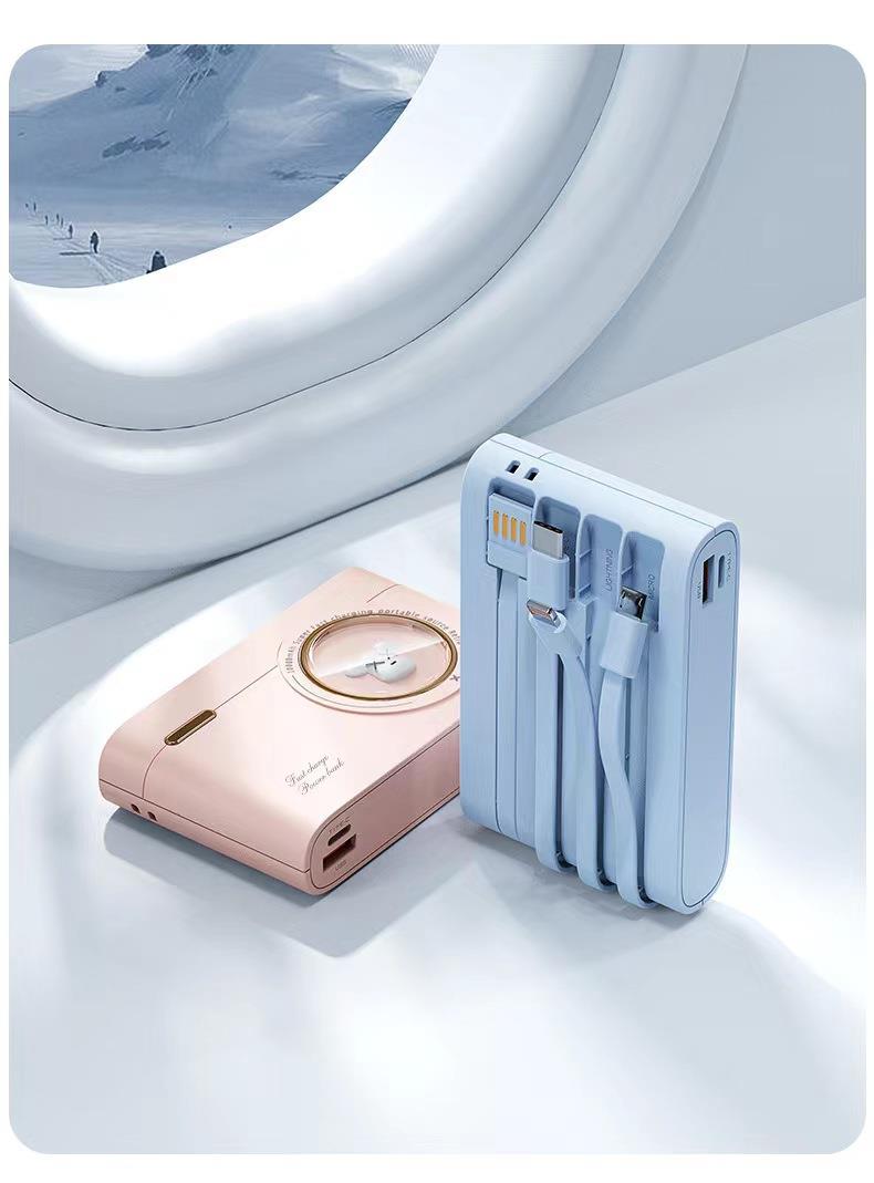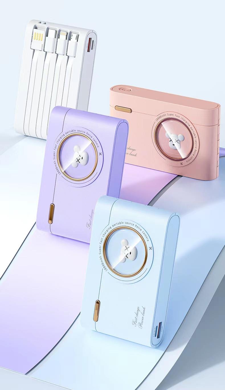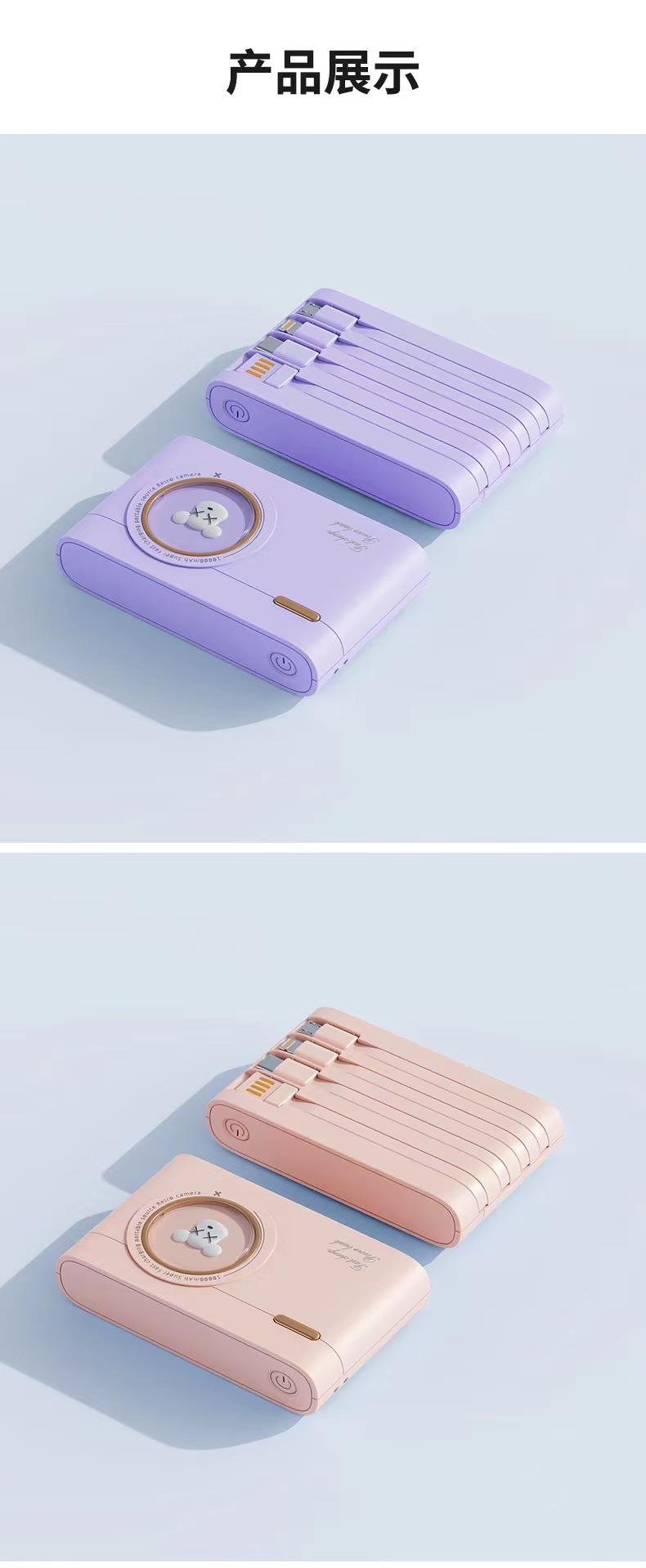 迷你卡通相机20000毫安自带4线充电宝快充大容量移动电源