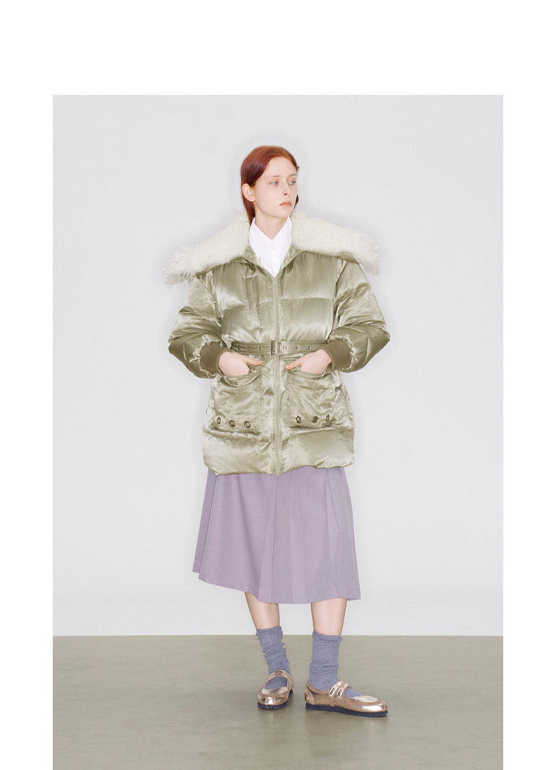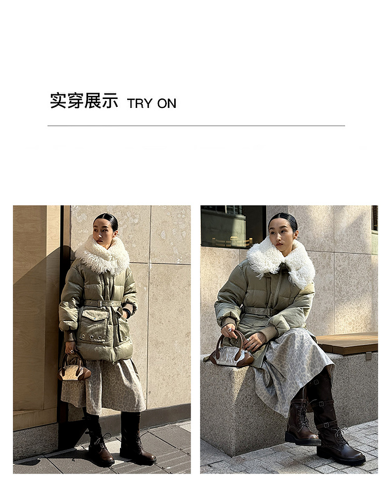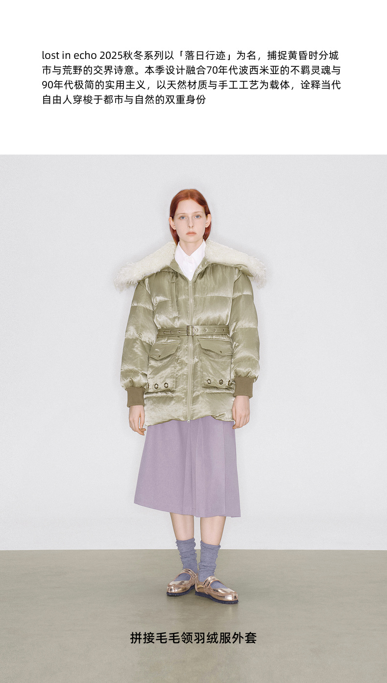 lost in echo2025秋冬新款休闲宽松拼接毛毛领保暖鸭绒羽绒服外套