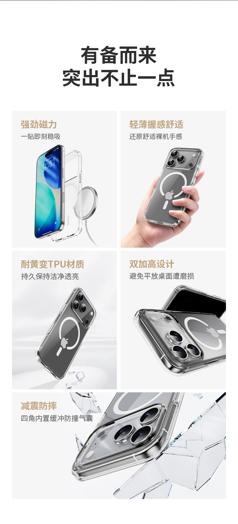 ROCK iPhone 17系列 晶盾透明磁吸保护壳