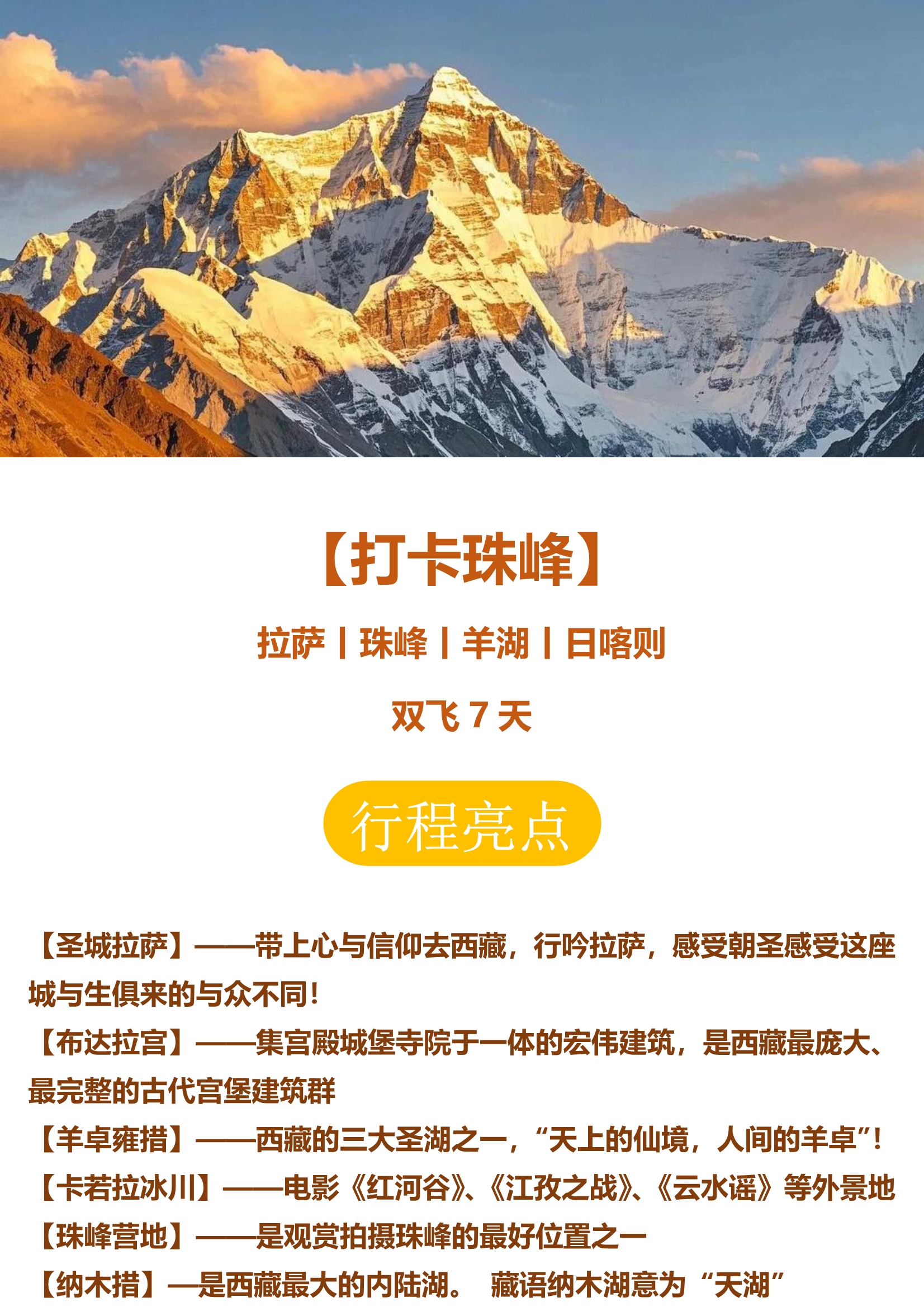 【打卡珠峰】西藏双飞7天