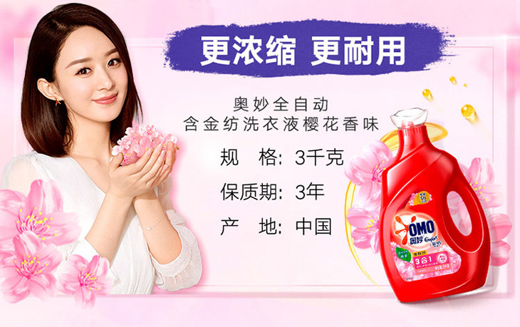 奥妙3kg(淡雅樱花)全自动洗衣液含金纺柔顺剂