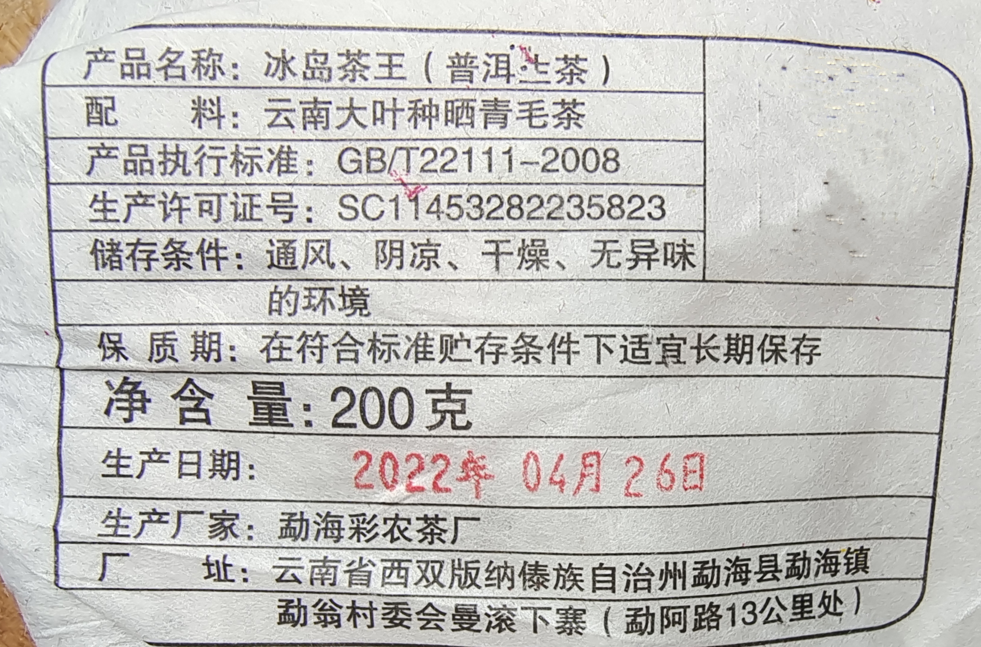 冰岛茶叶型肥厚、硕大,呈现褐黑色。香型以花果香型为主,滋味醇浓,叶底粗大、饱满、厚实,叶形完整、柔软。