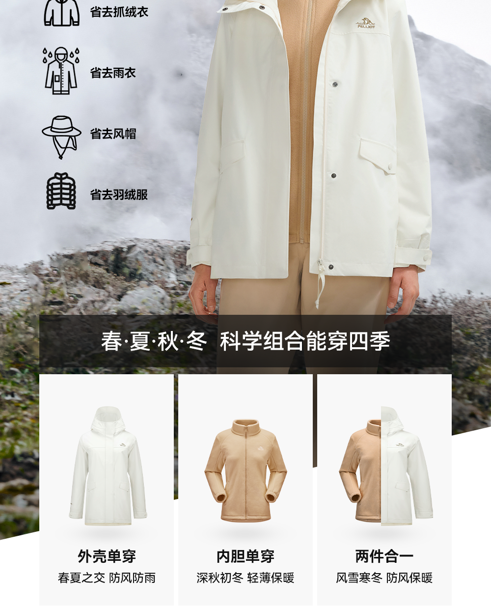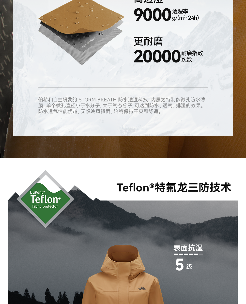 伯希和户外三合一冲锋衣2025秋冬新款Teflon三防面料徒步登山外套